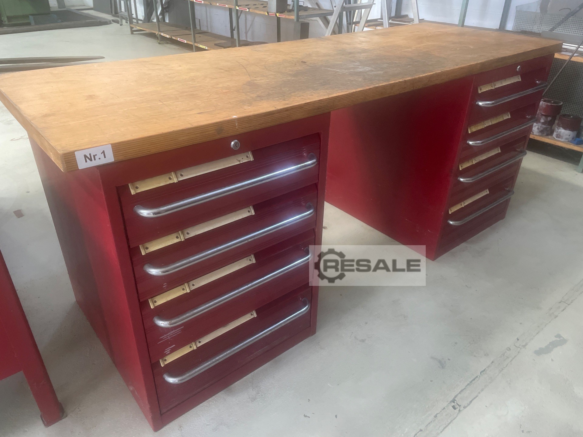 Different variants of workbenches for sale. Prices and pictures are available at: inventar-verkauf.de/id/alesco