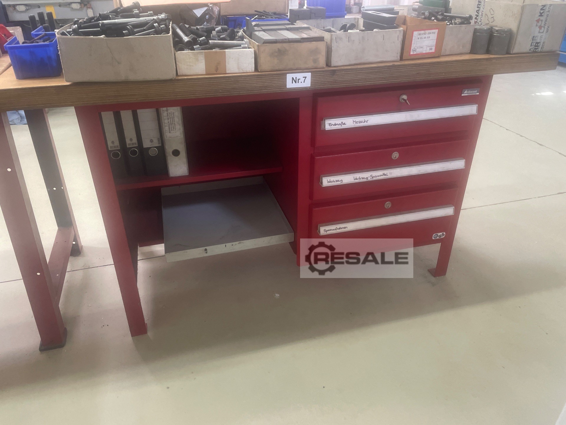Förch workbench – worktop solid wood spruce/poplar – one door – three drawers – storage compartment – all lockable – as good as new with traces of storage – key available Pallet in exchange Auction-ID: A1-45889-312