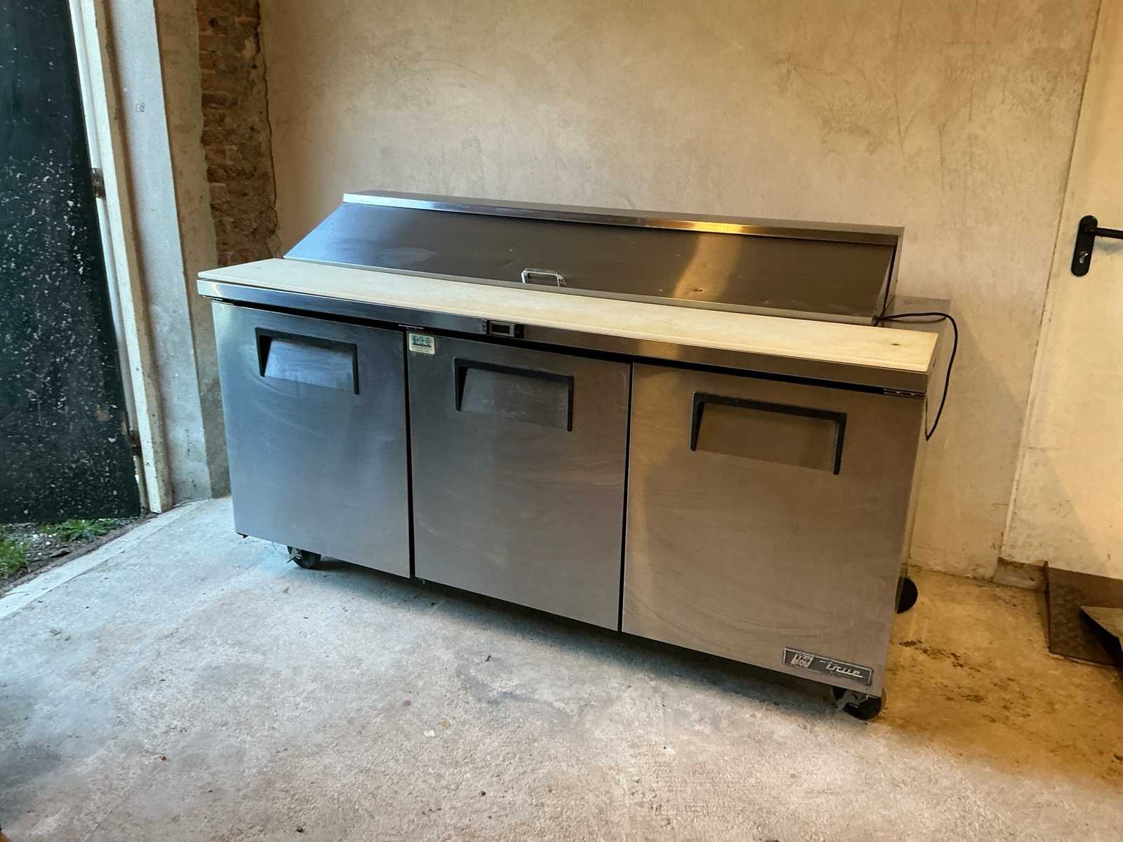 Equipped with: Metos heat holder with sink with faucet double heat lamp 136x85x83 Refrigerated workbench Metos with various drawers and salads 217x80120 Refrigerated workbench Metos with various drawers and gastronorm trays Auction-ID: A1-40102-82