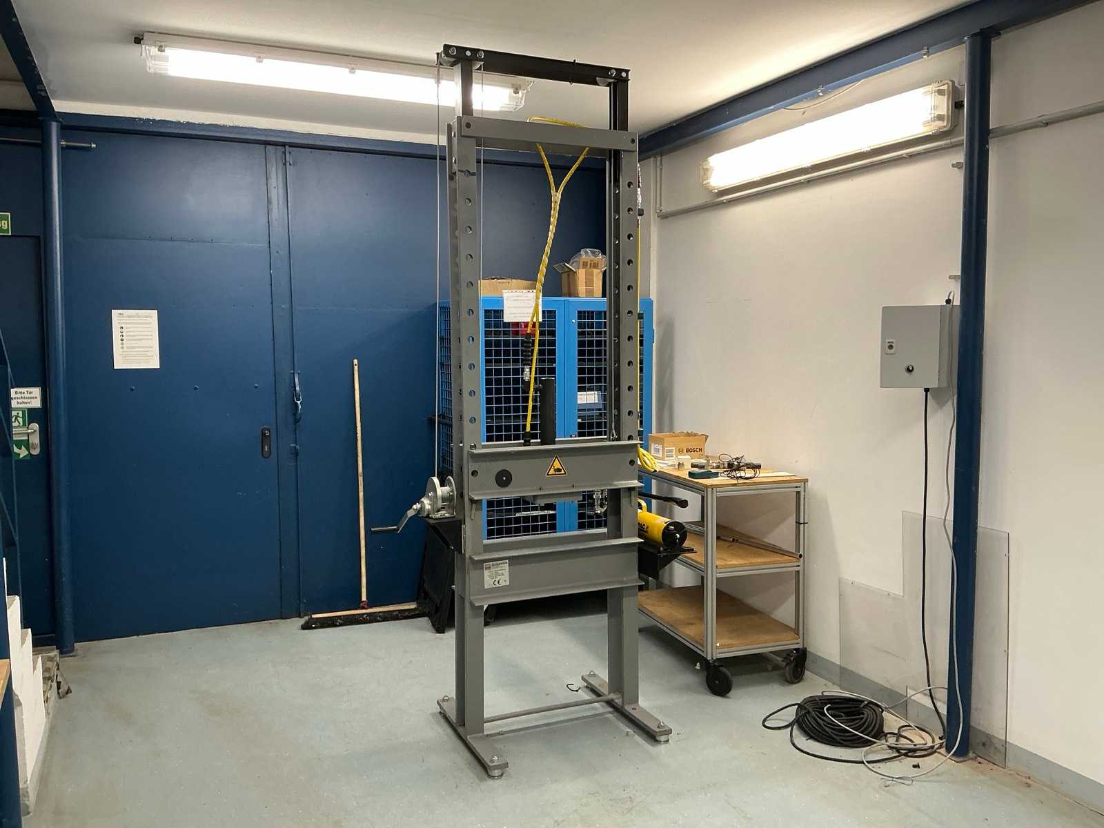 Frame press, CE certified according to the latest guidelines.>br>- with manual hydraulics>br>- cylinder to be moved sideways>br>- 2 pcs. press block 200x250x40mm / 200x70x40mm, max. 30t>br> with M16 threaded holes and some M16 threaded bolts>br>- 8 pcs. press bolts, 10 - 30mm,, with quick-change adapter, max. 20t>br>- 2 press pads>br>>br>pressure 20 t>br>stroke 180 mm>br>Clear width between uprights 540 x 100 mm>br>installation height max. 990 mm>br>cylinder diameter 72 mm>br>piston diameter 48 mm>br>Machine weight approx. 0.12 t>br>Space requirement approx. 0.8 x 0.7 x 1.8 m>br>>br> >br>Condition: never used / new (5) Auction-ID: A7-44817-166