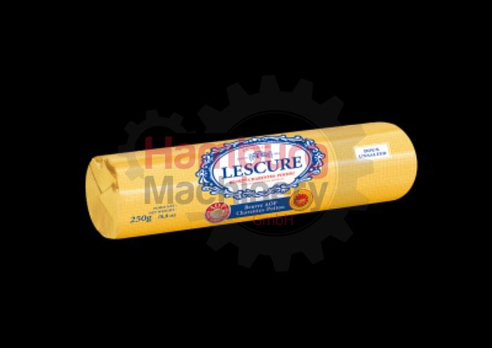 IMA P10K Automatic Butter Roll – Round – Log – portion wrapping machine in aluminium foil / parchment paper., The machine is included with the following pack format sets:, - Logs (or) Rolls (or) Round (or) Cylinder – ± 43 mm x 110 mm = 125 gram (complete), - Logs (or) Rolls (or) Round (or) Cylinder – ± 48 mm x 160 mm = 250 gram (complete including extra mouldset of ± 45 mm to reach ± 230 gram)., - Rectangular Blocks (or) Portions – 100 mm x 75 mm x 35 mm = 250 gram (filling nozzle and 1x guide for the bricks when they are upside down are missing)., - Rectangular Blocks (or) Portions – 160 mm x 105 mm x 65 mm = 1.000 gram (Guiding plate upside down, side guides and support level missing)., Product is fed through the hopper which includes a butter screw feeder., Maximum Speed: up to 60 packs per minute (Varies depending on the portion size), Products that can be packed: B ...