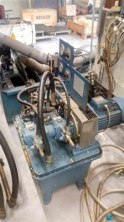 pressure:250 t passage width:1280 mm stroke:bis 500 mm total power requirement:47 kW weight of the machine ca.:23 t dimensions of the machine ca.:2200 x 1850 x 4600 mm table surface area:1250 x 1000 mm dayligth:800 mm daylight between the side columns:520 x 750 mm table height above floor:1000 mm Documents: vorhanden