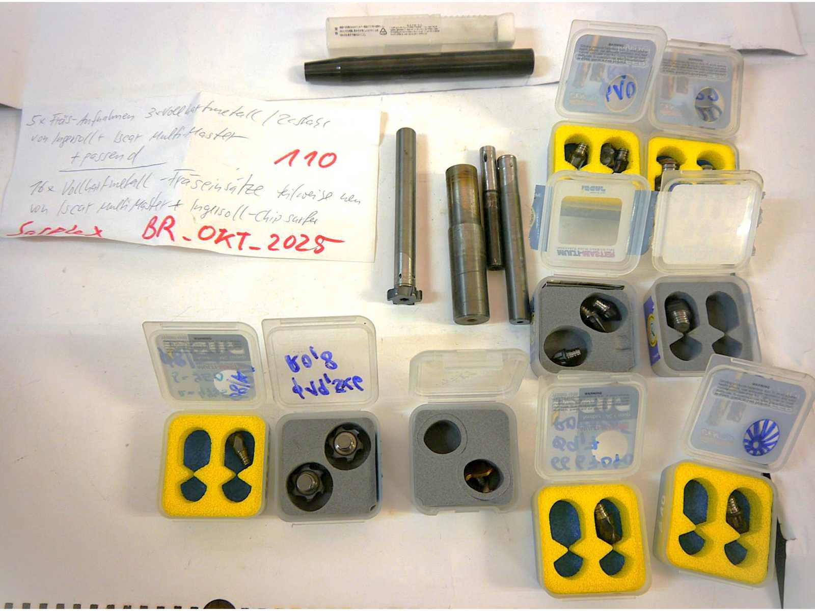 5 montages de fraisage dont 3x carbure massif et 2x acier d’Ingersoll + ISCAR Multimaster + inserts de fraisage 16x carbure solide adaptés, partiellement inutilisés par ISCAR Multi Master, Ingersoll-Chipsurfer Auction-ID: A7-44688-110