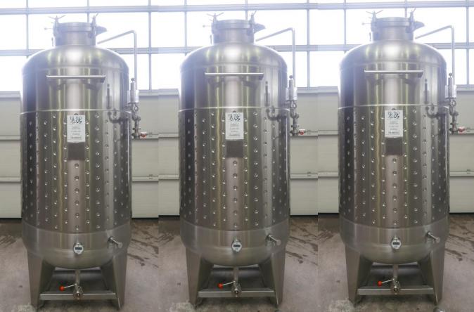 Depósito de vino espumoso 920 litros con chaqueta de refrigeración de V2A NUEVO certificado t-V Precio: 8.270 euros,--/pieza Altura total: 2460 mm Altura del cuerpo: 1900 mm Diámetro: 850 mm Peso: aprox. 240 kg Equipo estándar con: Zul.Operación sobrepresión Sala de productos: 6 bar Ab. Funcionamiento sobre-prensado Chaqueta de refrigeración: 1 bar Ab. Temperatura de funcionamiento en C: 130 Superficie interior: III C