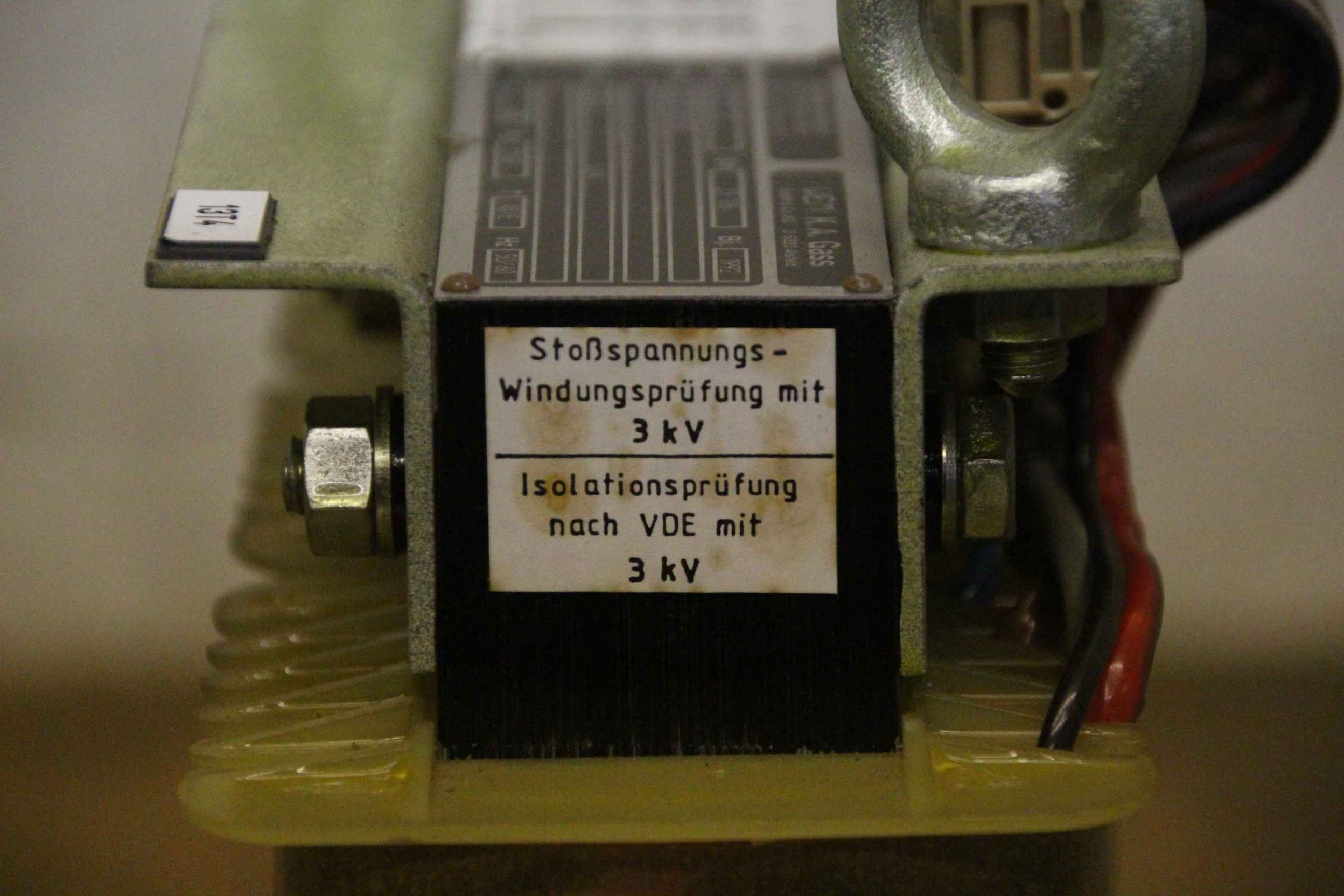 Small transformer with casing MURR UEIG-1-15-TR Prim. 200, 220, 350, 380, 420 V AC sec. 24 V DC 0.63 A spare part for TRAUB TND300 ! used ! Dimensions: 125 x 110 x 100 mm
