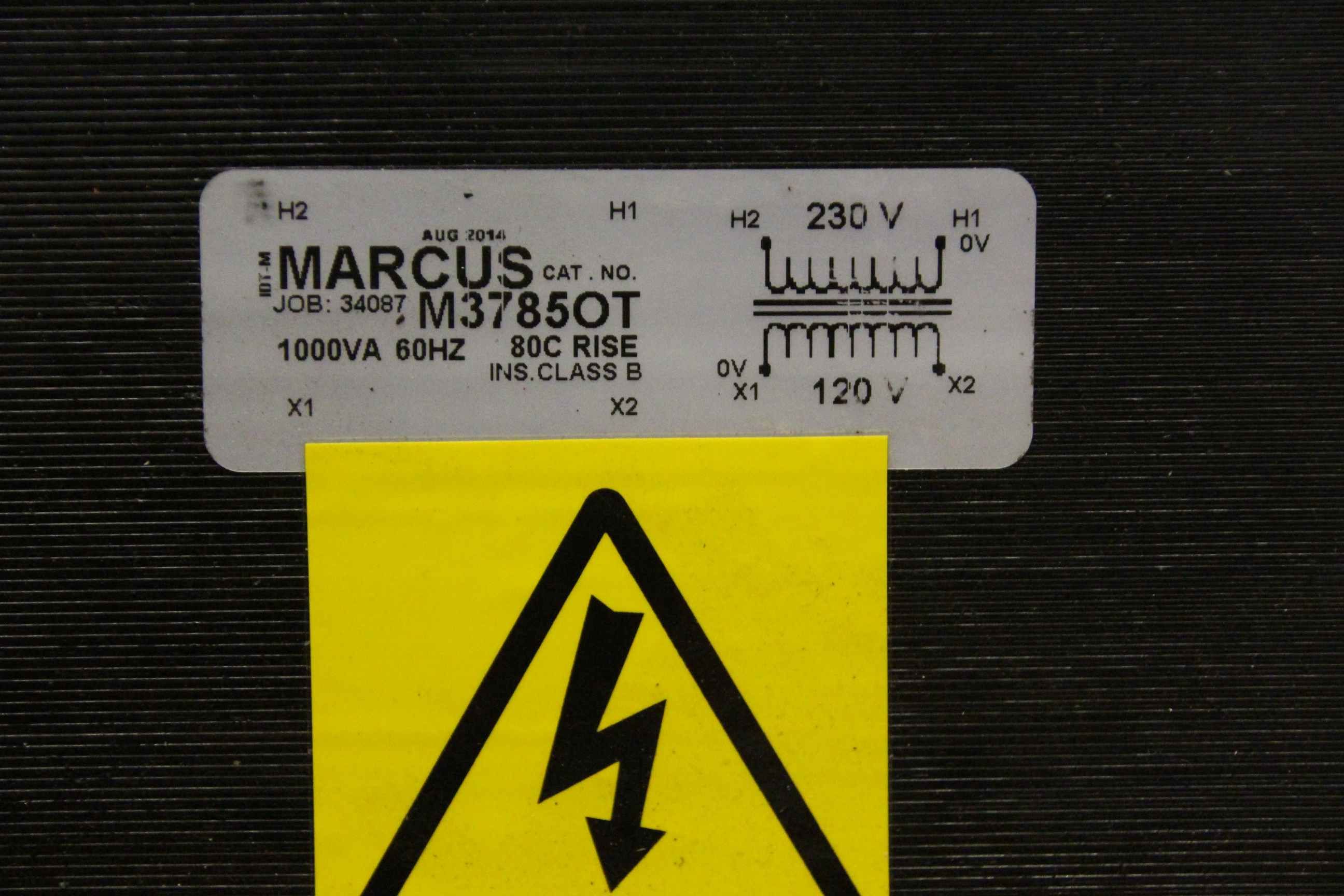transformer -Marcus: M3785OT 80C RISE -VA: 1000 VA -Frequency: 60 Hz -Voltage: 230/120 V -Price: per piece -Number: 2 pieces available -Dimensions: 160/130/H110 mm -Weight: 11.3 kg