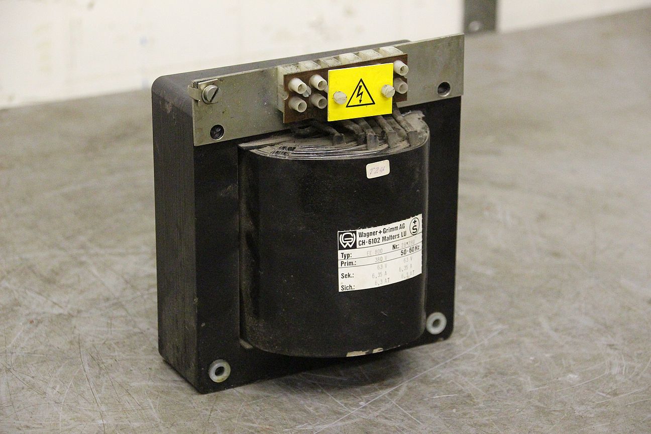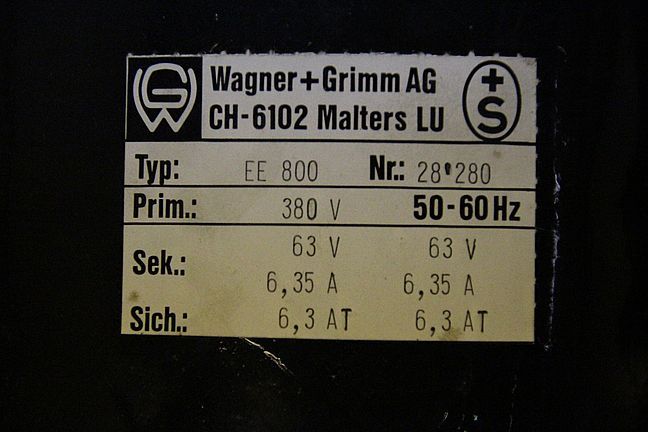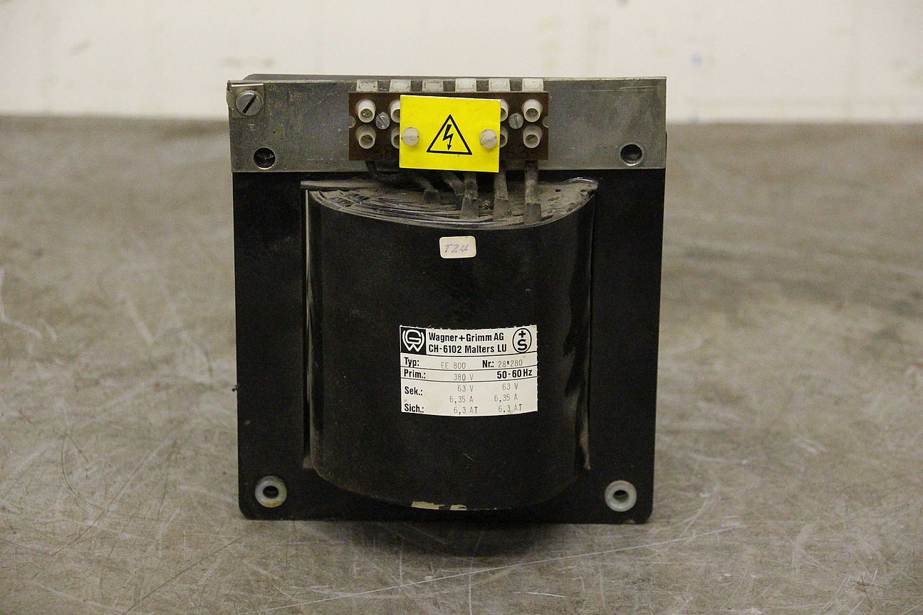 transformer -Type: EE 800 -Primary: 380 V -Secondary: 63 V 6.35 A. -Dimensions: 160/130/H180 mm -Weight: 12.3 kg