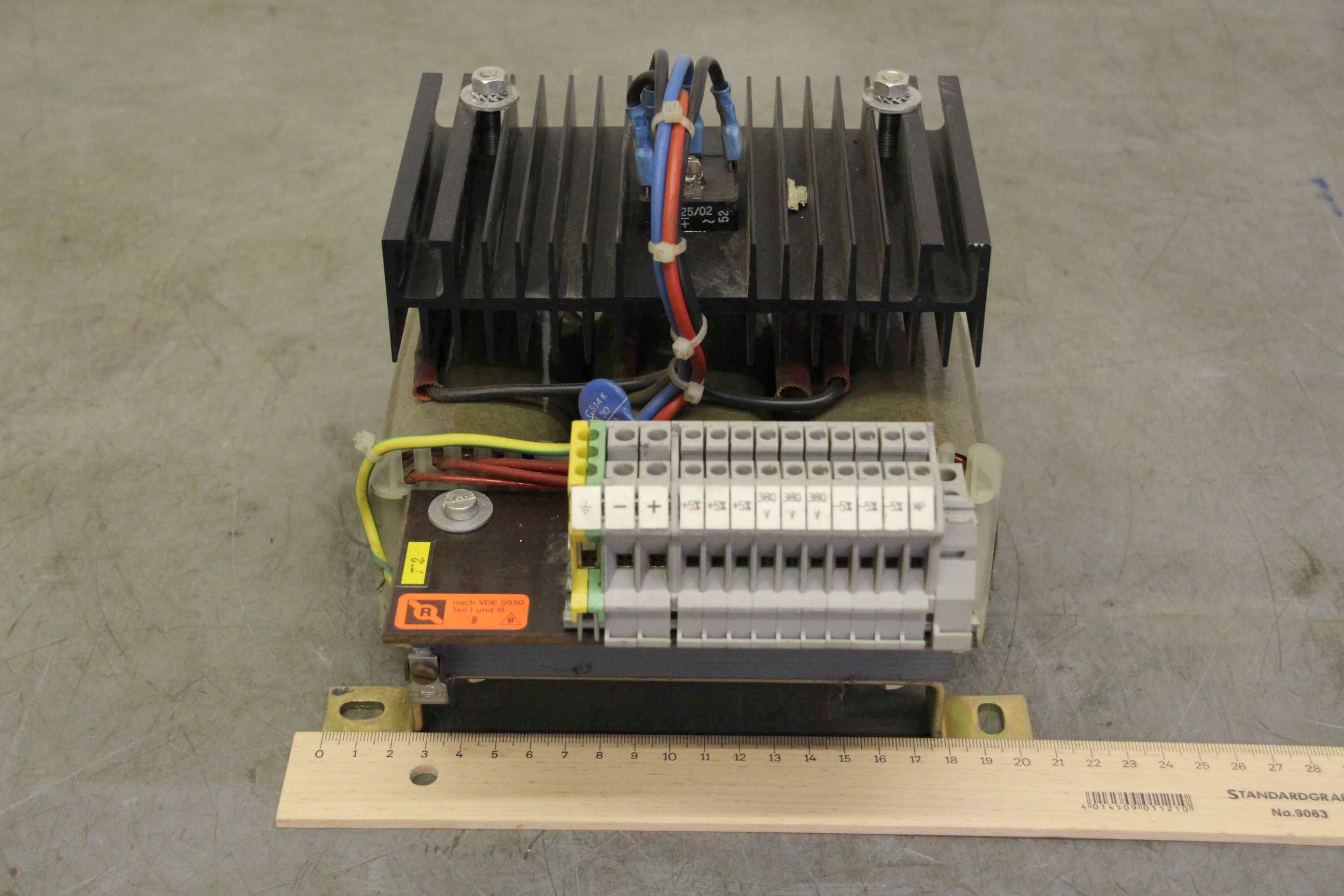Isolating transformer, three-phase isolating transformer M. RIEDEL TRANSFORMATORENBAU RDRKL 25 S ( RDRKL25S ) 0.8 kVA Prim. 3 x 380 V sec. 24 V DC 25 A 50 - 60 Hz spare part for TRAUB TND300 ! used, tested, with downstream three-phase bridge rectifier ! Dimensions: 210 x 210 x 190 mm
