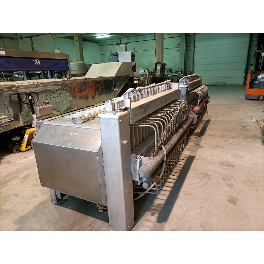 VERTICAL PLATE FREEZER, DYBVAD STÅL INDUSTRI, TYPE: V-4-16 Technical description: Refrigerant: R22 / R502 / R717 Temperature range: - 40 ° C / + 40 ° C Blocks number: 16 or 32 blocks Block size (16x): 820 mm x 76 mm x 800 mm Block size (32x): 390 mm x 76 mm x 800 mm Total dimensions: 2300 x 1400 x 1400 mm