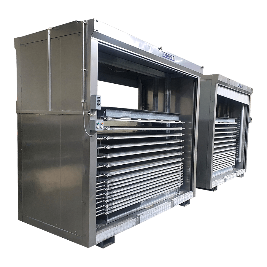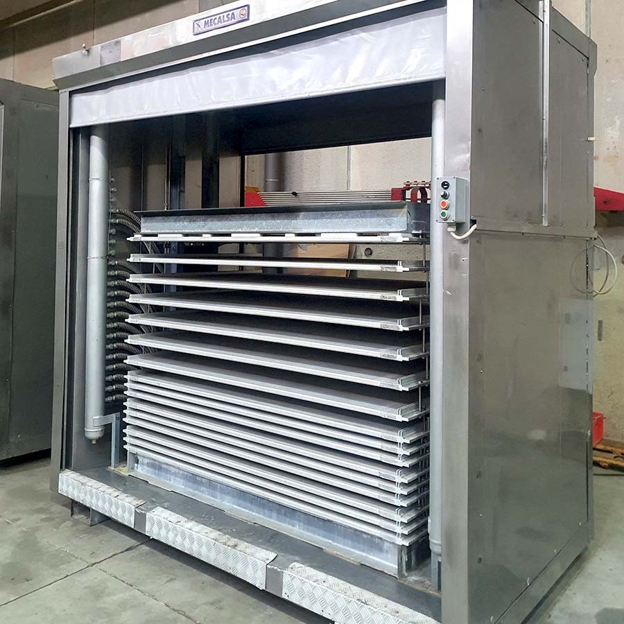 FREEZER CABINET, YORK SAMIFI FREEZERS SRL, MODEL: MIDI C/15 Technical features: Refrigerant: NH3/R717 Plates number: 16 plates Stations number: 15 stations Station size: 1835 x 1140 x 100 mm Dimensions: 2700 x 1620 x 2700 mm