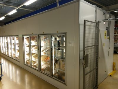 SMEVA 27 M2 Número de producto:M18-7070 Capacidad de refrigeración:0.001 kW Dimensiones: 9000 x 3000 x 2780 mm Número en stock:1 pieza(s) Precio:Solicitud de cotización Muy bonito almacén frigorífico Smeva con dos habitaciones (15 m2 y 12 m2), una puerta de entrada por habitación y 10 puertas de cristal (4 marcos). Visite también nuestro sitio web: refrigeración usada
