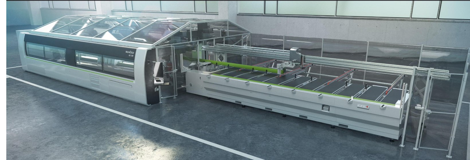 Manufacturer: Schuco Model: AS100 Throughput Center Year of Manufacture: 2020 and 2022 Type of Machine :CNC 5-Axis Machining Center Layout Version: MA6 Machine Dimensions - Total Length: 22,300 mm - Total Width: 7,123 mm - Total Height: 3,058 mm - Machining Zone Width: 5,357 mm - Loading/Unloading Magazine Width: 7,500 mm - Magazine Depth: 1,766 mm Connections Required - Power supply (electrical connection) - Compressed air - Network connection - All connections to be provided from above Key Features - Two fully equipped 5-axis machining towers - Five self-driven clamping vices - Combined loading and unloading magazine - Profile buffer capacity: up to 12 profiles lying flat, up to 16 profiles standing - Unmanned operation capability for up to 16 profiles - Six-sided profile machining - Variable gripper system compatible with all profile geometries - Integrated saw station and n ...