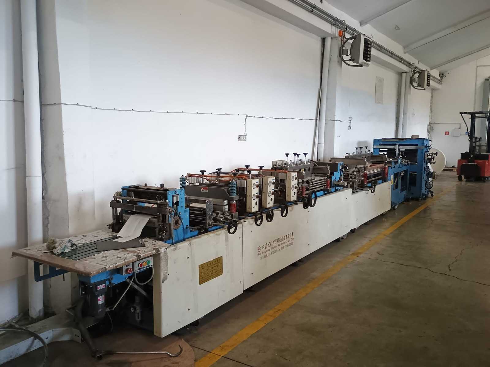 Máquina de conversión de papel Datos generales: Tipo de máquina: Línea de conversión de papel Fabricante: Desconocido Modelo: Desconocido Año de fabricación: Desconocido Número de serie: Desconocido Condición: Usada Peso: aprox. 7000 kg Dimensiones (L x Anor x Alto): aprox. 9000 x 2000 x 2000 mm Detalles técnicos: Poder: Desconocido Línea de procesamiento multiestación (alimentación, corte, punzonazo, apilamiento) Panel de control táctil (HMI) con parámetros ajustables (por ejemplo, ajustes de longitud ~340 mm) Unidades de procesamiento múltiples con rodillos y guías ajustables Sistema de salida de cinta transportadora Descripción: Línea de conversión de papel industrial diseñada para transformar rollos de papel en productos terminados o semielaborados, como hojas, bolsas o materiales de embalaje. La máquina realiza un procesamiento continuo de telarañas que inc ...