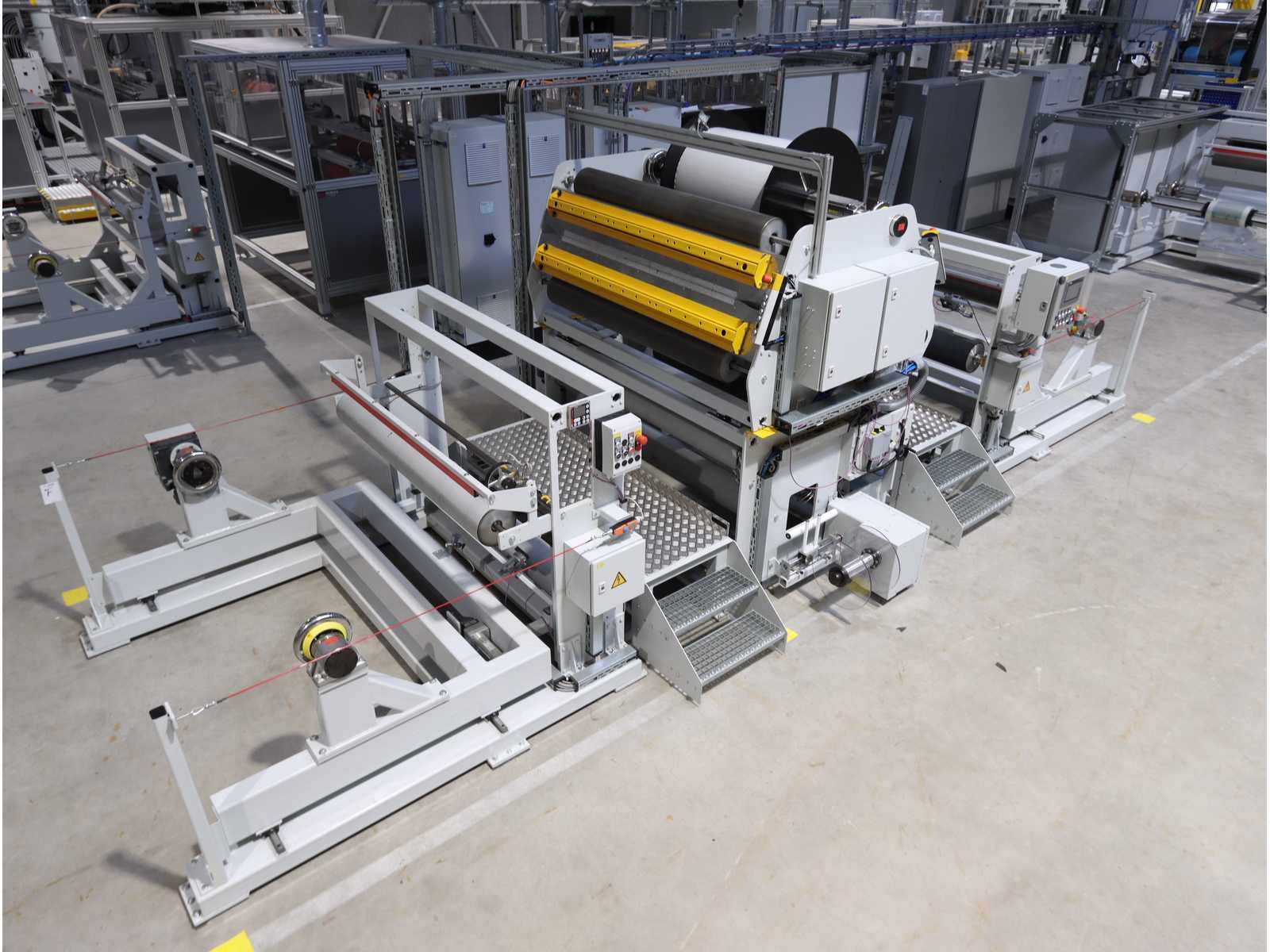 Tipo: KS-SW-2-50-R-2-400-SPT-1400-12, compuesto por 1 bobinador tipo \"Sillness\" tipo AFW-1-1400-1200-12-B con controlador digital \"BSTgroup\" (2022), sistema de corte de bordes, 1x enrollador \"Sander\" ABW-1-1400-1200-12-B con panel táctil \"Siemens\" \"controlador digital BSTgroup (2022), armario de interruptores de 2 puertas HSS-sara, espacio utilizado aproximadamente 7,500x2200mm, peso total aproximadamente 5000kg Auction-ID: A1-43459-13
