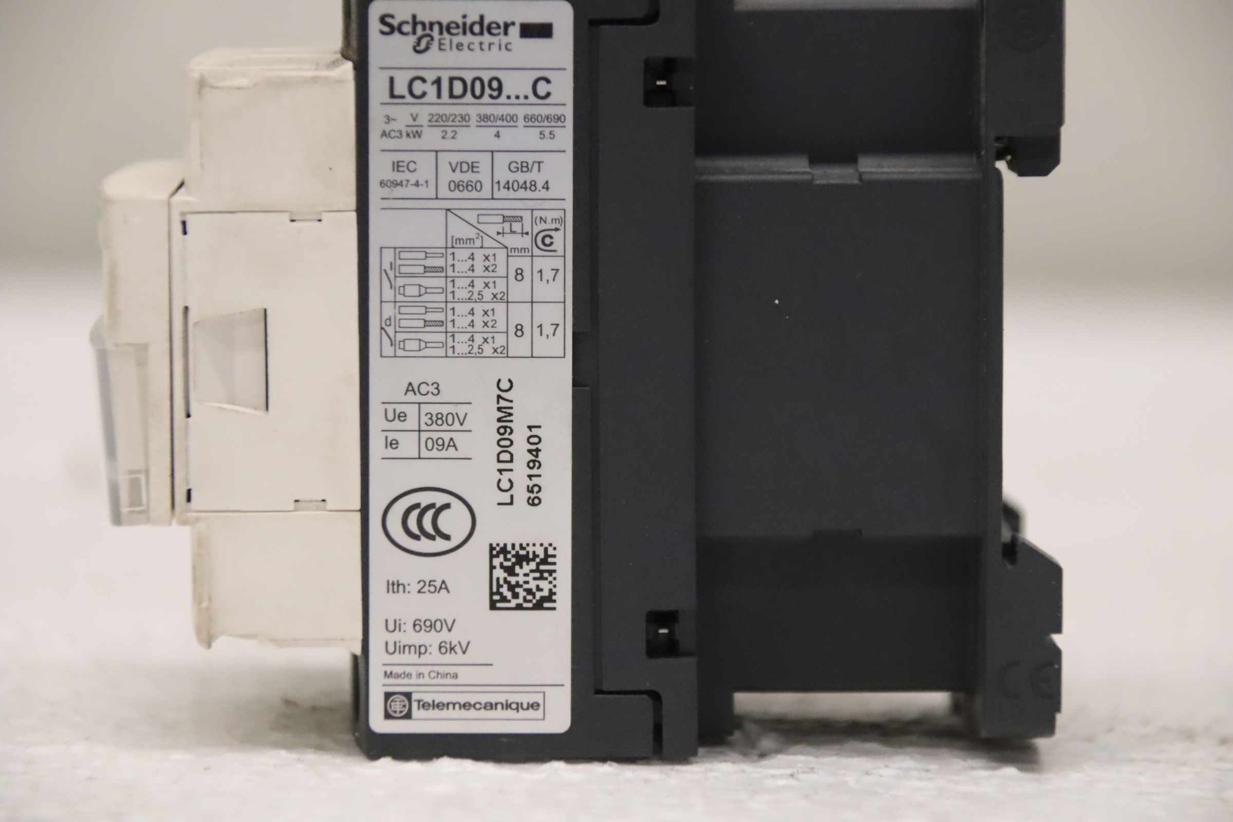 Contactor, semiconductor contactor, contactor, power contactor, capacitor contactor, motor contactor -Manufacturer: Schneider Electric, Power Contactor -Type: LC1D09M7C -Number: 7x contactors available -Price: per piece -Dimensions: 80/45/H90 mm -Weight: 0.3 kg/pc.