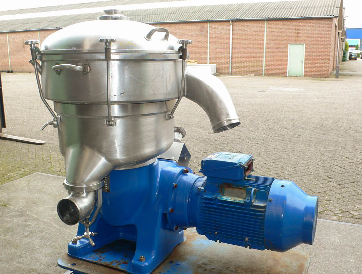 General SKU057G241 MakeAlfa Laval Sweden TypeFESX-412B-35/4000-66 No.2947617 Year of constructionunknown LocationBarneveld Main Features MaterialStainless steel Capacity75000 Ltr./Hr. Motor37 KW Specified Features - Separator Separatorcheck Capacity75.000 l/h Motor37,0 kW, 380-415 Volt Max. rotor speed1420-1500 / 1700-1800 rpm InletDia. 89 mm Liquid outletDia. 152 mm Solids outletDia. 152 mm MaterialStainless steel 1.4306 (304L) Information Floorspace1,7x1,2 m Total height1,7 m Weight1500 kg Extra SpecificationsNozzle separatorDiscountSeparatorsAlfa LavalDiscountCentrifuges > SeparatorsBrand > Alfa Laval What you can expect from Foeth: -- Machine is in working condition -- At a reduced price compared to new -- Ready for shipping to any destination worldwide -- You are welcome to inspect the machine in Barneveld, The Netherlands. Please visit us in Barneveld for m ...