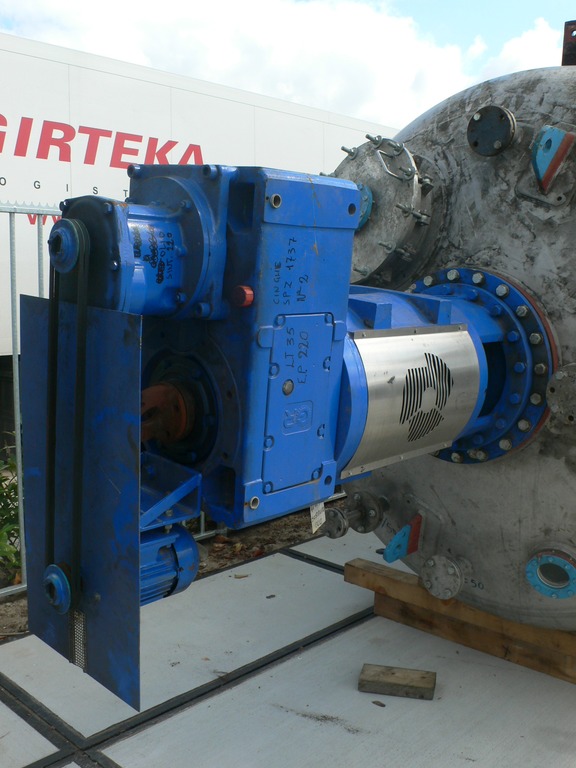 General SKU054F306 MakeWerner & Pfleiderer Stuttgart TypeUK-80 K4UH No.163 258 / 483 188 Year of construction1979 LocationBarneveld Pressure Working pressure2 Bar Vacuum possiblecheck Working pressure jacket10 Bar Main Features MaterialStainless steel Volume80 Ltr. Specified Features - Z-blade mixer Z-blade mixer(1x) Capacity170 Ltr, Useful capacity 80 Ltr Trough sizes515x525x600mm With covercheck With jacketcheck Max. temperature350 Degr. C. Double geared(hydraulic driven, power pack is missing) With adjustable packing glandscheck Hydraulic tiltingcheck With hydraulic unitcheck Motor2,0 KW, 220/380 Volt MaterialStainless steel 1.4571 (316Ti) Information Mounted on foundationcheck Floorspace2,8x1,2 M Total height1,9 M Weight2450 KG Extra Specifications- With additional set masticator arms Catalysts & fillersFeed additivesPaper & otherDiscountZ-blade mixer ...