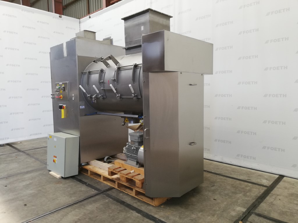 General SKUR1240 MakeDrais (D) LocationBarneveld TypeT1600 Main Features MaterialStainless steel Volume1600 Ltr. Motor22 KW Specified Features - Powder turbo mixer Powder turbo mixercheck Capacity1620 ltr. Trough sizesdia. 1100x1800mm Inlet580x480mm Inspection hatch(4x) 600x430mm Outlet220x200mm With adjustable packing glandscheck Motor22 kW 380 Volt MaterialStainless steel 1.4541 (321) Information No.51362 Year of construction1983 With switchcheck Floorspace3.4x1.3 M Total height3,0 M Weight3600 Kg ATEX compatiblecheck Extra SpecificationsIncluding extra coupling and electric motor 22 kW 380-420 / 655-725 Volt (Ex) Catalysts & fillersFeed additivesOther pharmaceuticsCosmeticsFood additivesSugarAnimal feedOther feedConfectionerySolid pharmaceuticsDyes & pigmentsPowder turbo mixersMinerals & inorganicSpicesOther chemicalStarchTea, herbs & coffeeGeneric medicine ...