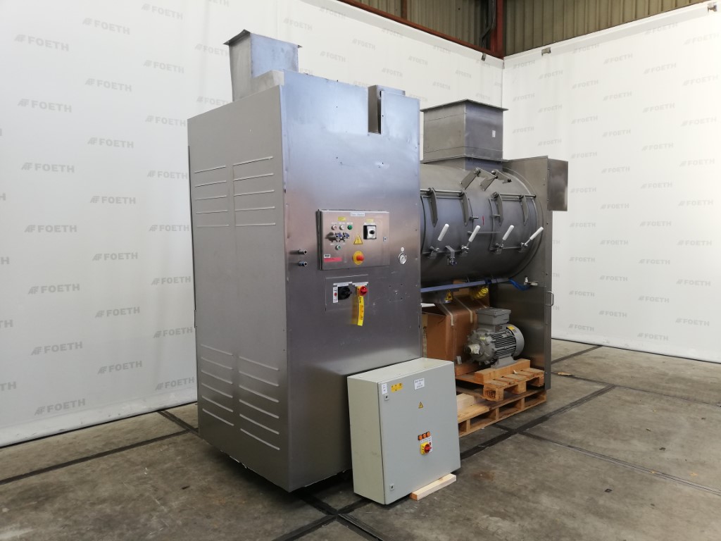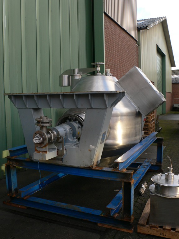General SKU049C230 MakeHaagen & Rinau Bremen TypeHSM-50 K No.8803827 Year of construction1989 LocationBarneveld Pressure Working pressure0 Bar Vacuum possiblecheck Working pressure jacket4 Bar Main Features MaterialStainless steel Volume65 Ltr. Motor24 KW Specified Features - Paddle dryer Turbulent dryerHochleistungs-Wirbel-Schnellkneter (1x) Capacity65 l (useful 18-42 l) Trough sizesø 420 x 460 mm Manholecheckinspection hatch 345 x 195 mm Outlet250 x 190 mm With jacketcheck 13 l Max. temperature100°C. Motor24,0 kW, 380 Volt (Ex) With variable speed drivecheck MaterialStainless steel 1.4571 (316Ti) Information With switchgearcheck Floorspace3,0 x 1,0 m Total height1,9 m Weight1900 kg ATEX compatiblecheckCatalysts & fillersFeed additivesDiscountOther pharmaceuticsCosmeticsSugarAnimal feedOther feedConfectionerySolid pharmaceuticsDyes & pigmentsBiopharmace ...