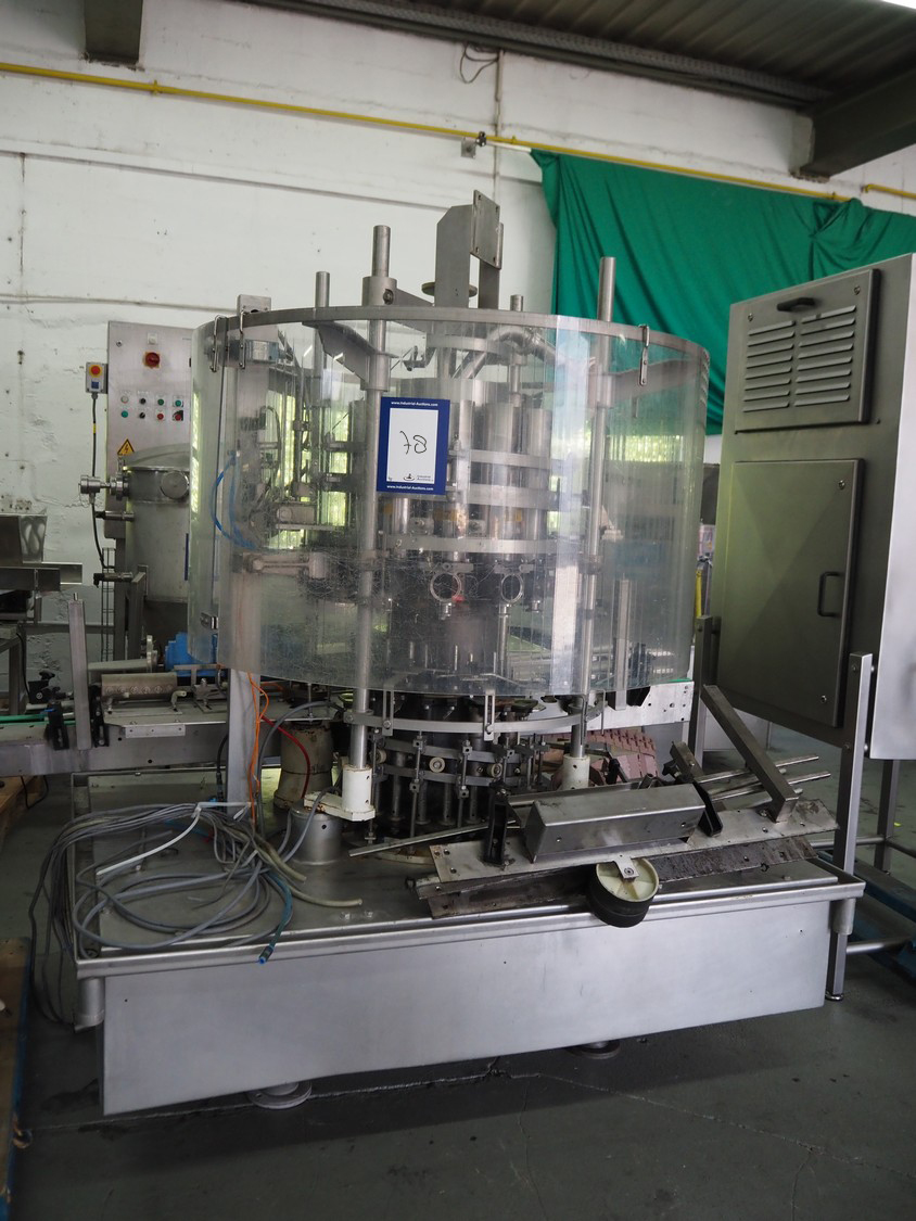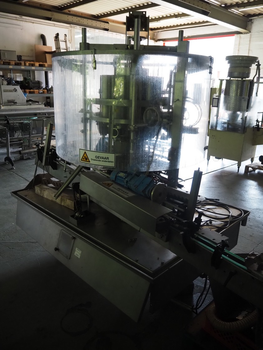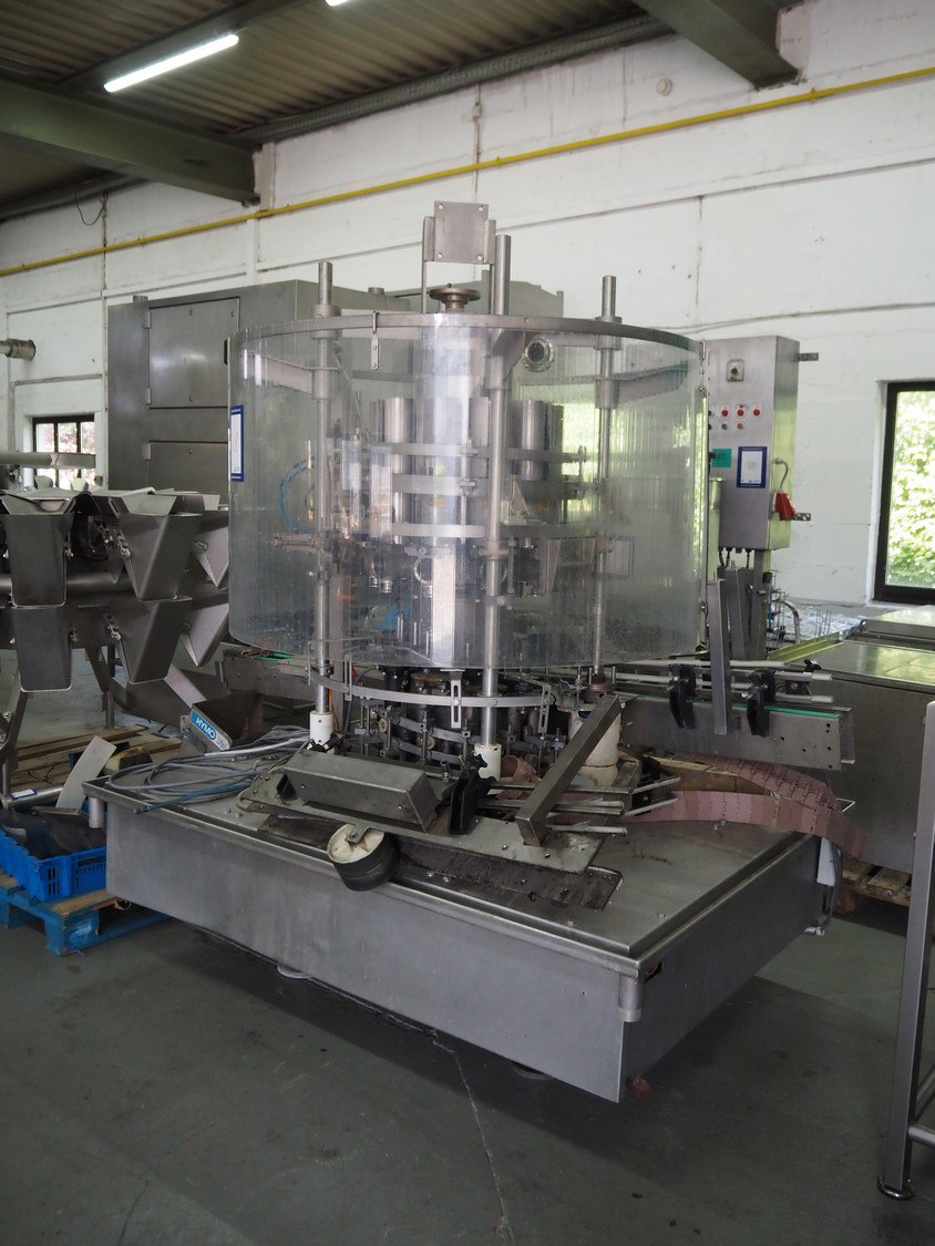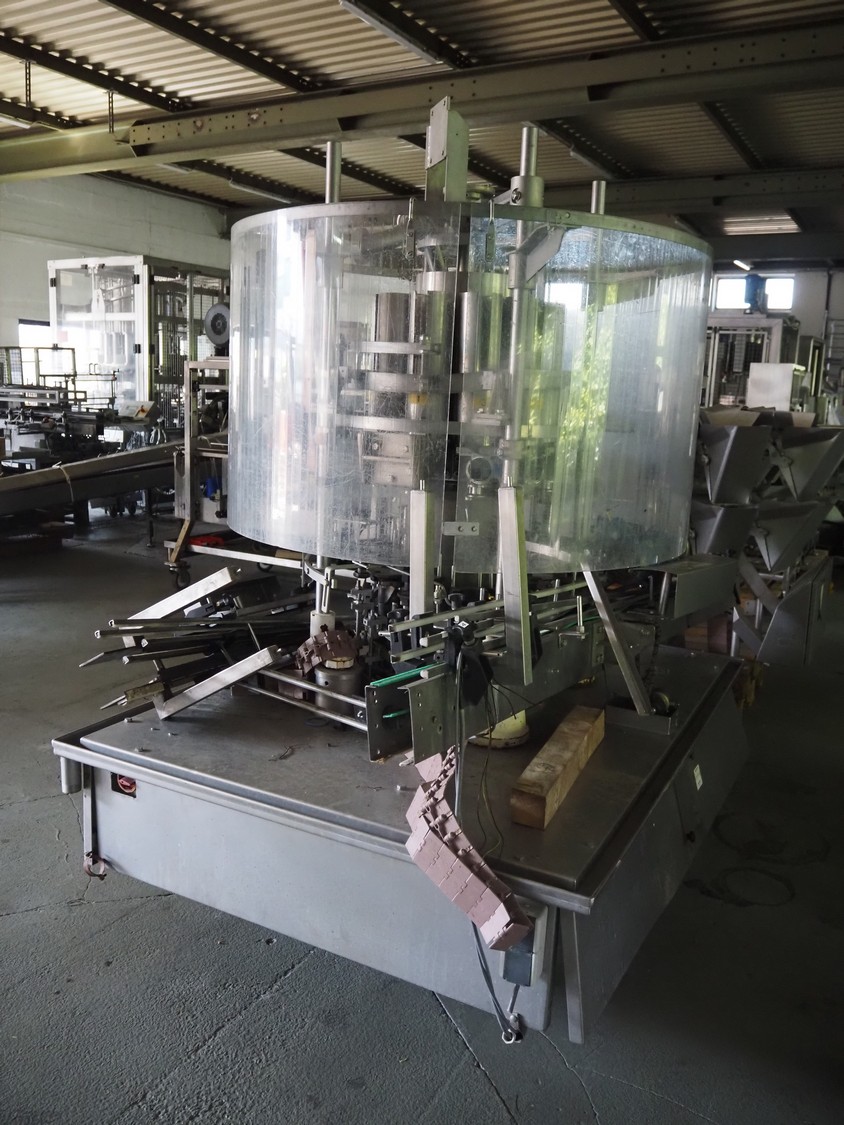 Machine à remplir des bocaux FAM à 10 têtes, modèle : RP610RH, numéro de série : 150/52/1, diamètre : 10 mm, courroie de transport en plastique, largeur de bande : 85 mm, dimensions totales : 2750 mm x 1500 mm x 2400 mm. Incluant la palette avec réservoir s/s et meuble d’interrupteur, dimensions intérieures du réservoir : 580 m x 690 mm, dimensions du réservoir : 770 mm x 600 mm x 1570 mm, dimensions du meuble d’interrupteur : 800 mm x 600 mm x 2100 mm, incluant 2 chariots avec pièces, dimensions du chariot : 1150 mm x 600 mm x 950 mm et 700 mm x 1500 mm.