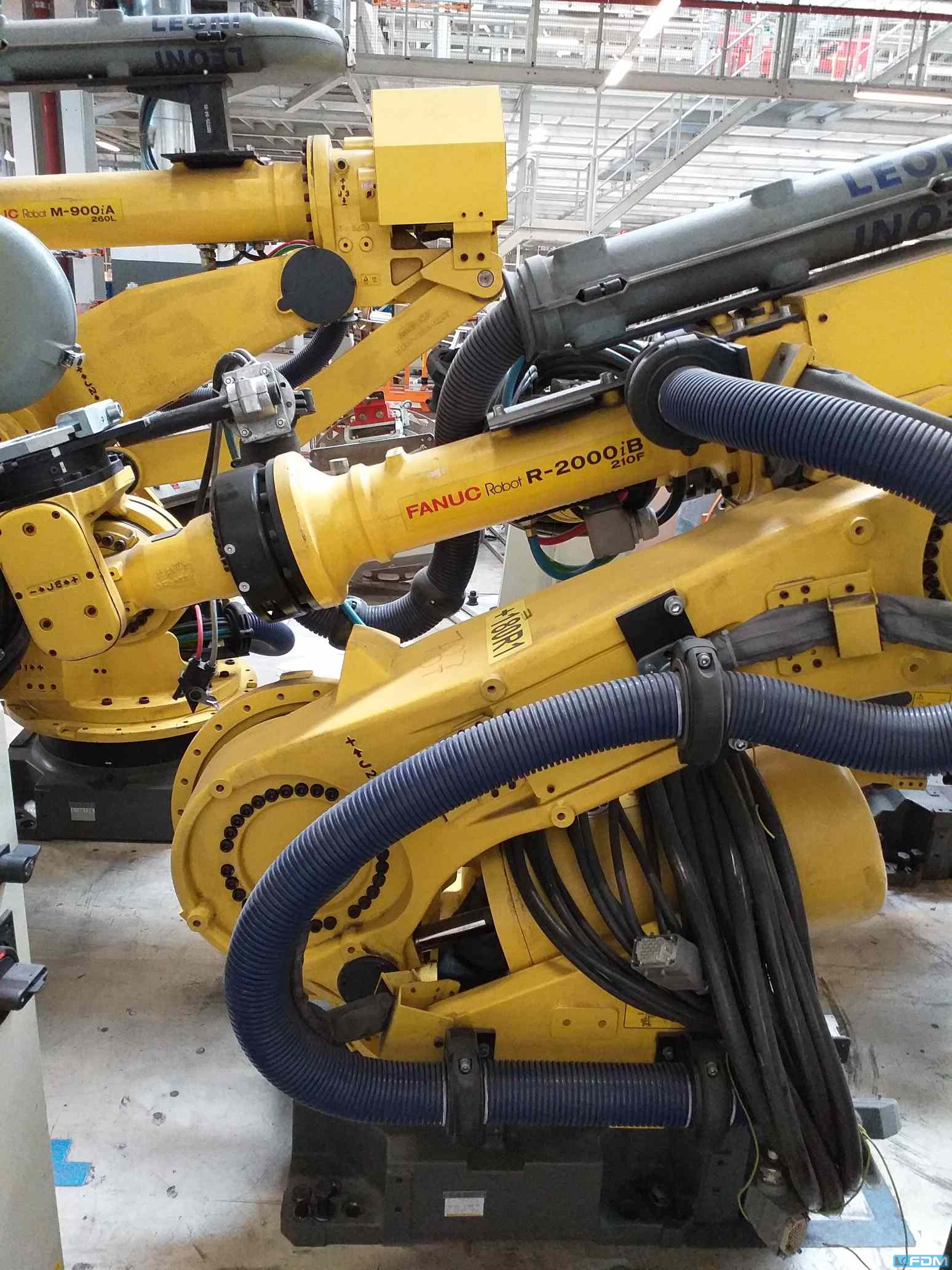 Controls:FANUC J3iC WORKING RANGE -ROBOT-:. - capacity:210 kg - Reach:2655 mm - Number of controlled axes:6 DIMENSIONS / WEIGHTS:. - total weight approx.:1240 kg Technical description : 6-axis industrial robot. Payload according to model. Including electrical cabinet operating panel and cable. More KUKA robots in quantities available i.e. # KUKA KR 150 # KUKA KR 210 # KUKA KR 240 # KUKA KR 360