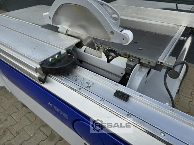菲尔兹 K7 滑动台锯 电机功率:400V 7 KW,50HZ 格式滑动台:2.3 米 切割高度:103mm 锯片:旋转,最大 315 毫米 WJ-400105 带伸缩挡块折叠挡块的动臂工作台 上部防护罩 制造年份 1997