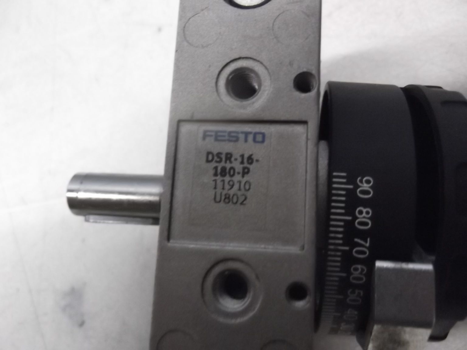 Swivel drive, pneumatic cylinder, rotary vane drive, swivel module -Type: DSR-16-180-P -Shaft diameter: 10mm -Number: 1x available -Dimensions: 78/78/H57 mm -Weight: 0.3kg