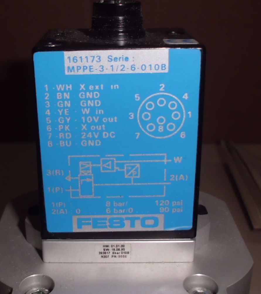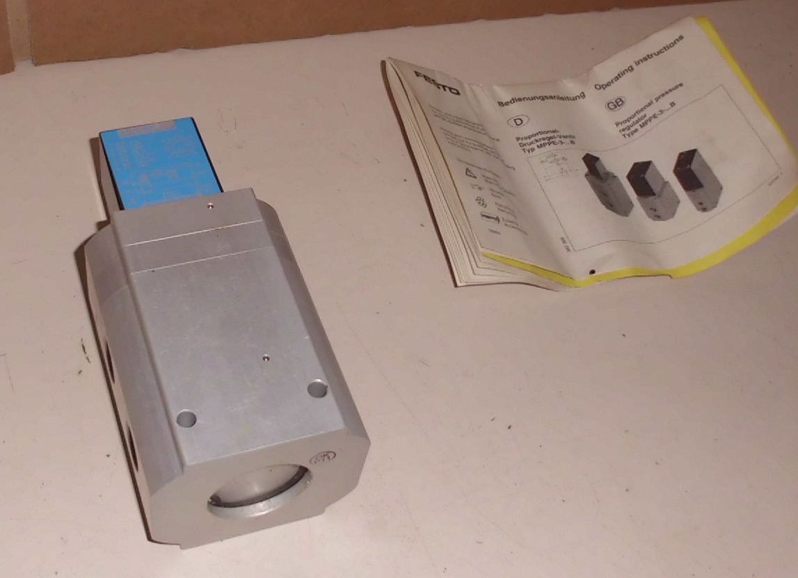 Proportional pressure control directional valve, solenoid valve, pneumatic valve, air valve, pressure valve, valve block, control block -Operating pressure: 8 bar 120 psi -Dimensions: 200/85/H75 mm -Weight: 2 kg
