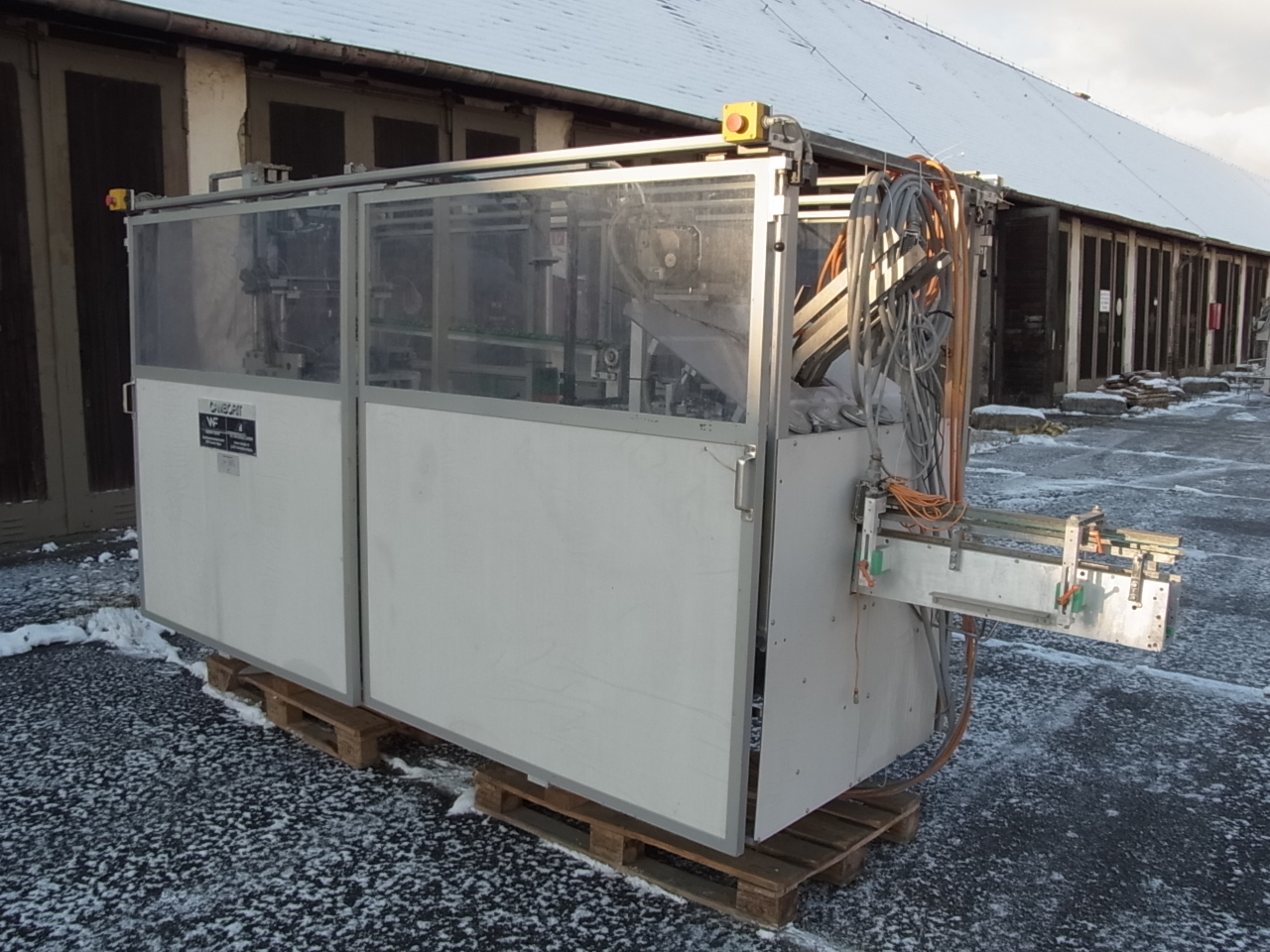 The fishing and packing plants have a simple and this stable and torsion-free construction. The machines are characterized by ease of use, flexibility, reliability and low maintenance requirements. The CAMBORIT clip has a capacity of up to 125 packs / min. 1 x 2 bottles can be packed with the CAMBORIT clip. To do this from flat so called "bars" cut to shaped, that get caught under the edge of the bottle. The machine can be operated automatically or manually. Display and operating elements are located on the control panel. All functions are controlled from the control panel and controlled. Errors of the cycle are displayed on the control panel. Action: At the beginning of production the magazine must first cut to be filled. The minimum level is cut to the magazine below, the machine will not turn on. After switching on the machine when existing minimum level of bottles with a capac ...
