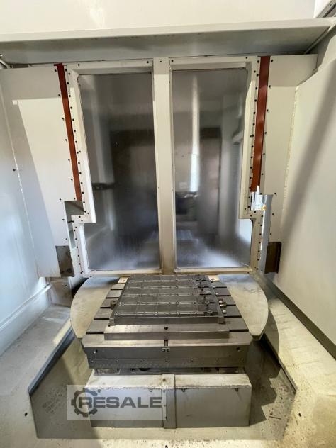 :::SPÉCIFICATIONS TECHNIQUES ::: Modèle CNC : Heidenhain - Version CNC : iTNC 430 - Porte-outil : HSK 63 - Puissance de la broche : 15Kw Nombre de vitesses de broche : 18000 - Nombre d’outils : 32+32 - Course de l’axe X : 2050mm - Course de l’axe Y : 520mm - Course de l’axe Z : 520mm Dimensions de la table : 1000 x 600 mm Guides : rouleau Cloison pour le changement de palette : oui Table rotative pivotante : oui Type de table rotative pivotante : continue Degrés de la table rotative pivotante : 0 - 180 Taille de la table : 700 x 500 mm Pression élevée du réfrigérant : oui Valeur de pression : 70bar Système de réservoir externe avec filtre : oui Convoyeur de copeaux : bande Préréglage : oui Équipement de la machine : carte Ethernet Palpeur Heidenhain TT 120