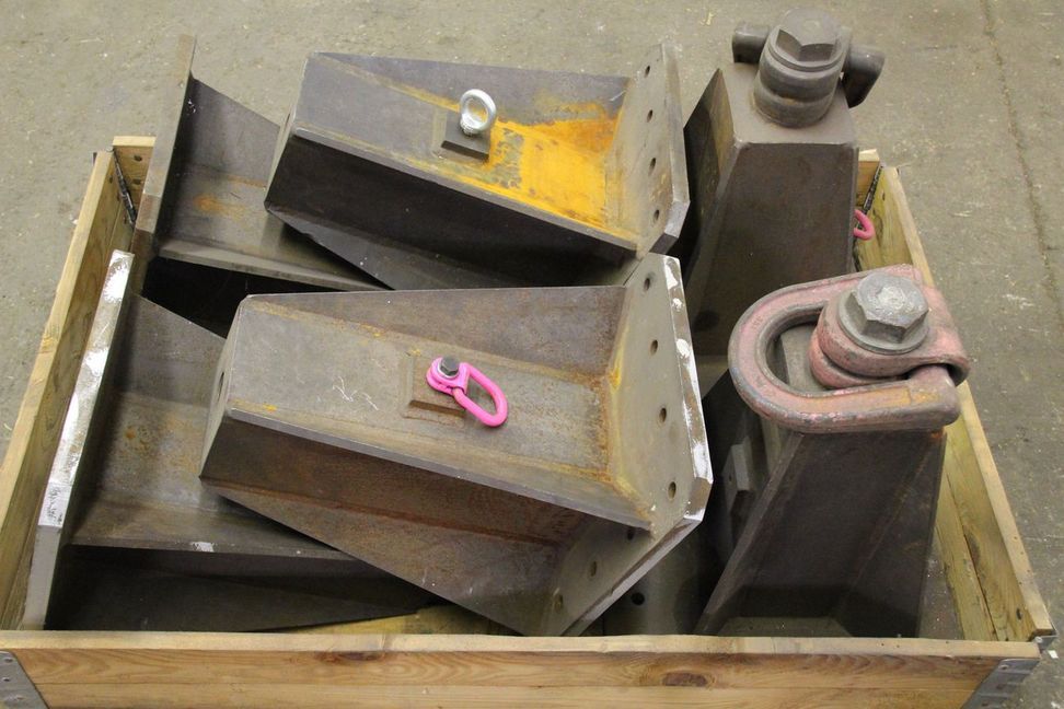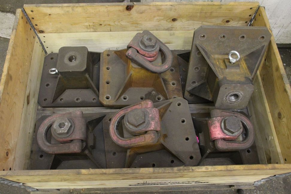 Lifting jack, swivel jack, lifting jack, shackle, load lifter, lashing eye, lashing, anchor point, lifting jack thread-Load racks: 6 pieces, 450 mm height-Base plate: 450 x 350 x 20 mm-Shäkel plate: 146 x 146 mm, M42 2 pieces with shäkel-Price: complete-Dimensions: 450/350 / H450 mm-Weight: 60 kg / pc.