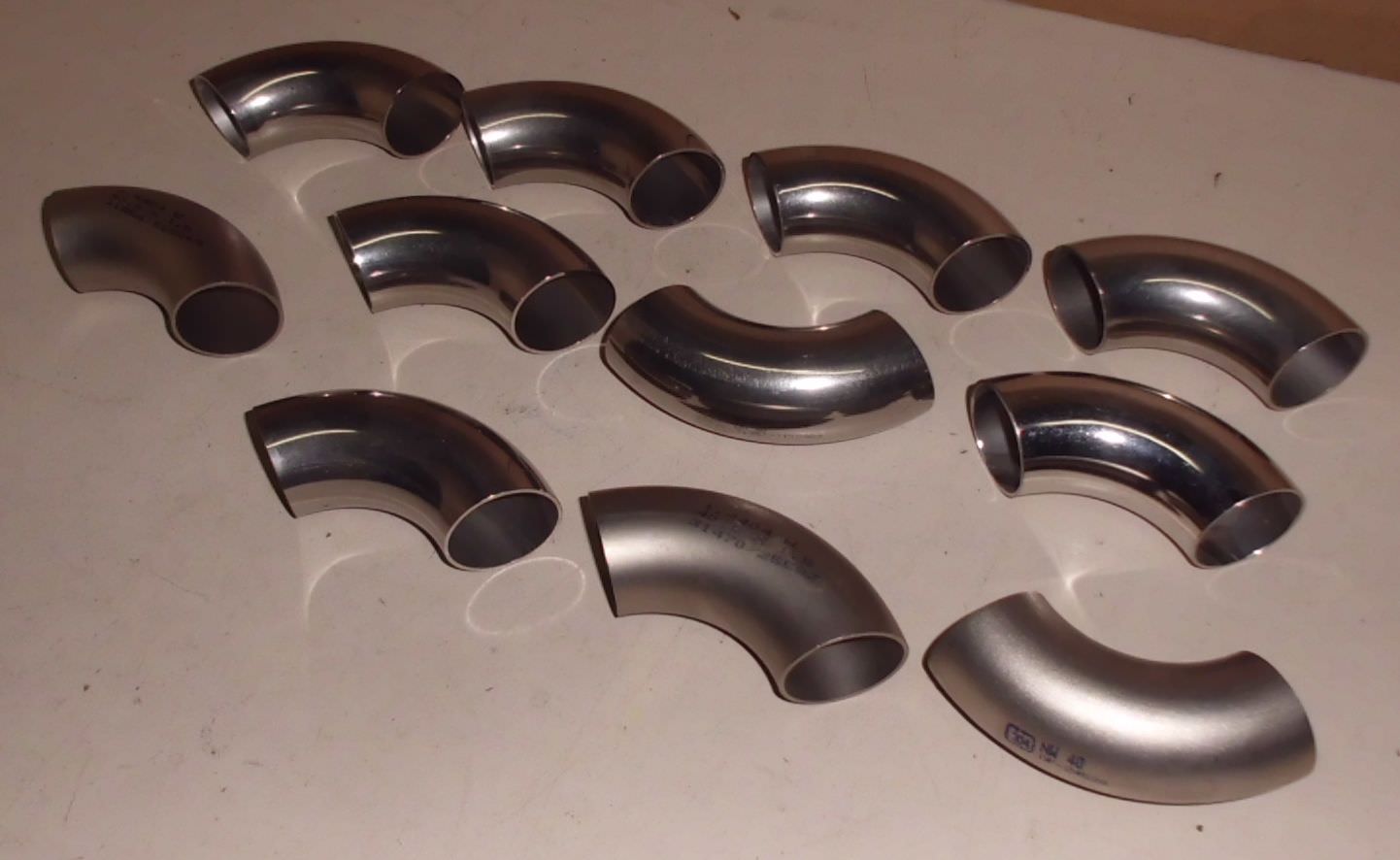 Stainless steel pipe bend, welded bend -Size: 40 x 1.5 mm 90° Price: complete -Quantity: 39 pieces -Weight: 7 kg
