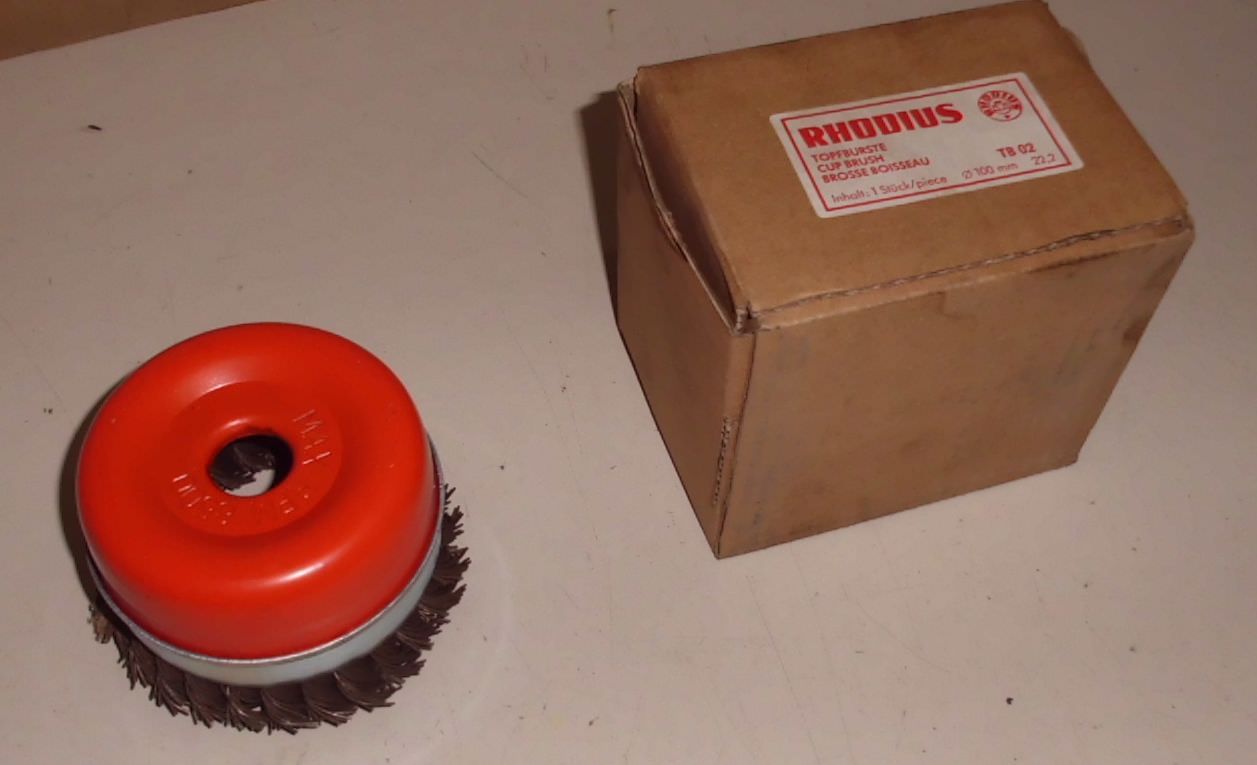 Cup brush-Type: TB 02-Outer: Ø 100 mm-Recording: 22.2 mm-Speed: Max. 8500 rpm-Price: per piece-Number: 8x available-Weight: 1 kg/piece