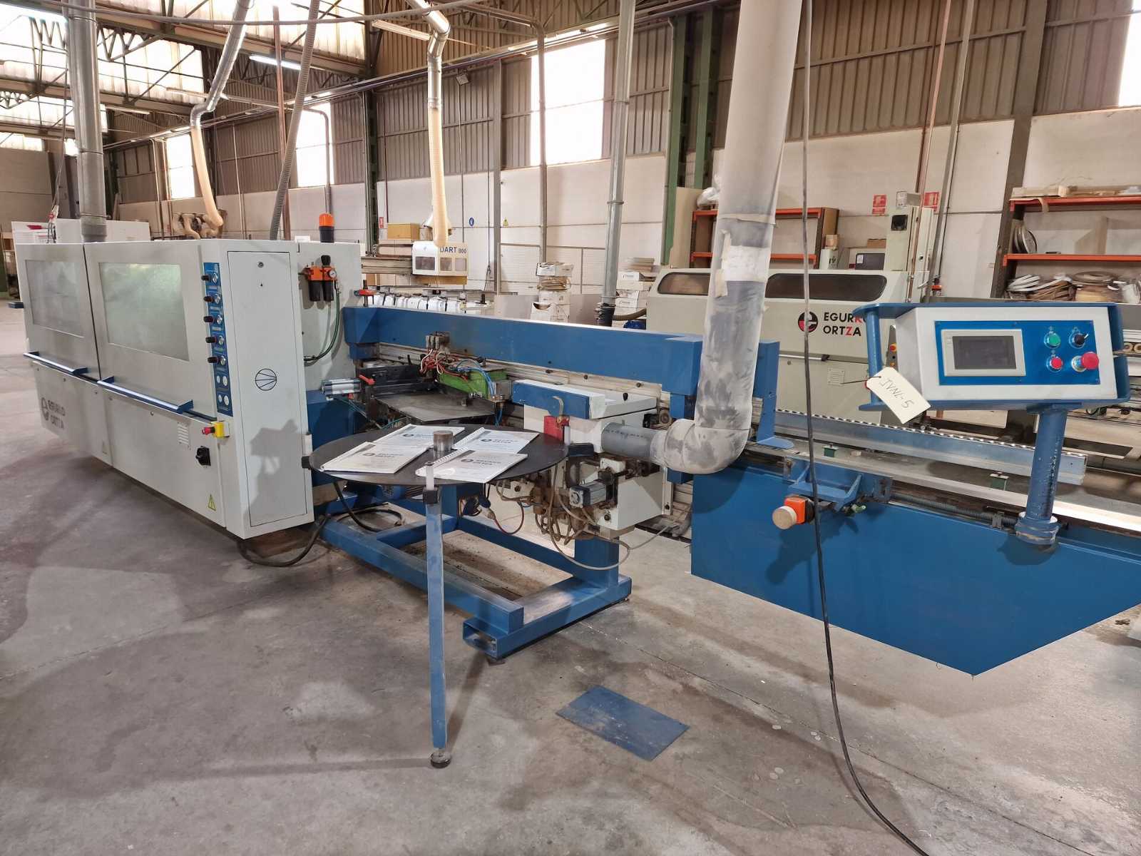 - Puissance totale installée : 8,80 KW. - Épaisseur du bord de 0,40 mm à 16 mm. - Épaisseur de la pièce de 10 mm à 60 mm. - Longueur minimale de la pièce : 140 mm. - Largeur minimale de la pièce de 60 mm. - Vitesse d’avance réglable de 10 m/min à 20 m/min. - Moteur d’avance de 1,50 kW. - Contrôle. - Chargeur de bord pour les lattes et le rouleau, plateau de bord pour un rouleau. - Unité de collage avec réservoir pour adhésif thermofusible granulé. - Groupe de pression avec (1+2) rouleaux. - Groupe de coupe transversale, 2 x moteur de 0,50 KW-12000 tr/min. - Groupe de profilage des rayons, 2 x moteurs à 12000 tr/min. - Conditions de fonctionnement de cette machine : non vérifiées. - Cet article est livré chargé par camion. Les coûts de démontage et de chargement sont ceux spécifiés comme des coûts supplémentaires. Auction-ID: A7-44536-6
