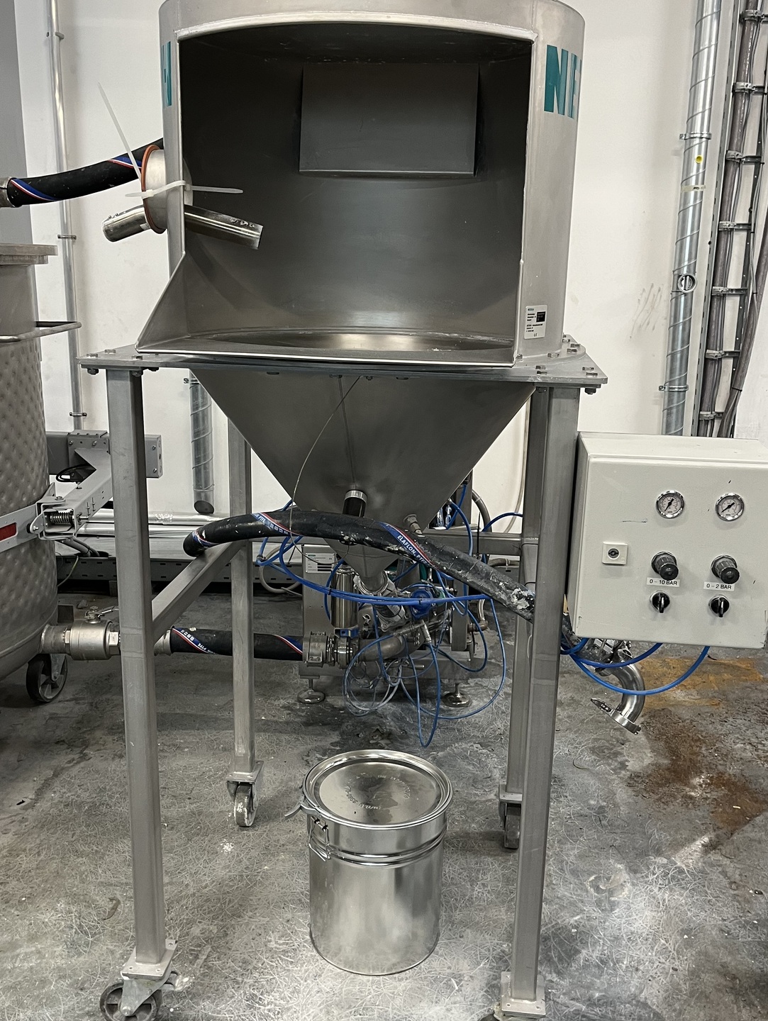 General SKUR0162 MakeAZO Liquids GmbH (D) LocationBarneveld TypeContinous Powder Mixing Main Features MaterialStainless steel Motor12 KW Specified Features - Inline mixer MaterialStainless steel Information No.111182-01 Year of construction2015 Floor space3,3x1,5 M Total height2,8 M Weight1900 Kg Extra SpecificationsIncluded 1 X Blender type PMXR material Stainless steel, motor 2,2 kW, with seal barrier system brand Aerni type AFR 168 ZS 8L max pressure 23 bar with liquid circulation pump 0,18 kW 1 x 520 ltr. tank brand Urban type wasserbehalter serial number 15.1606 pressureless, conical bottom, flat top. single-walled, uninsulated, on legs. 1 x Schenk Process powder funnel MechaTron type GRLS 27.070.000.0083 serial number V093547.A01 built in 2015 with a vibrating chute underneath. 1 x ITT Borneman screw spindle pump type SLH-4G-2033 working pressure 4 bar 5.5 kW. 1 x ...