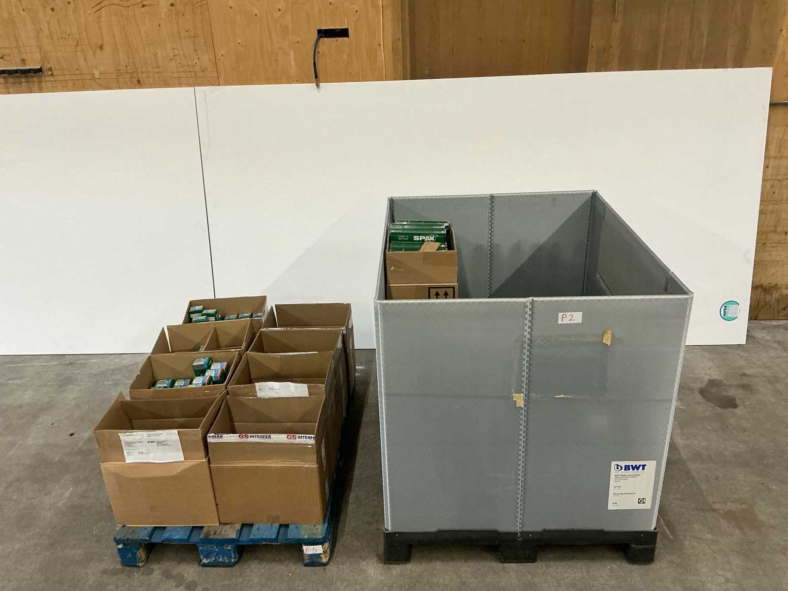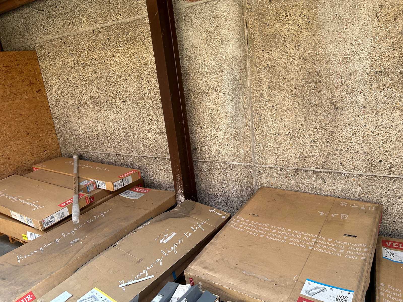 Environ 35 gouttières Nedzink de 300 cm de longueur (incluant notamment 8 boîtes avec supports de montage, dont certaines non ouvertes), environ 30x downpipe de longueur 200 cm x 7 cm de diamètre, 10x caisses Airtec Duoroll sous faîtière Auction-ID: A1-44065-318