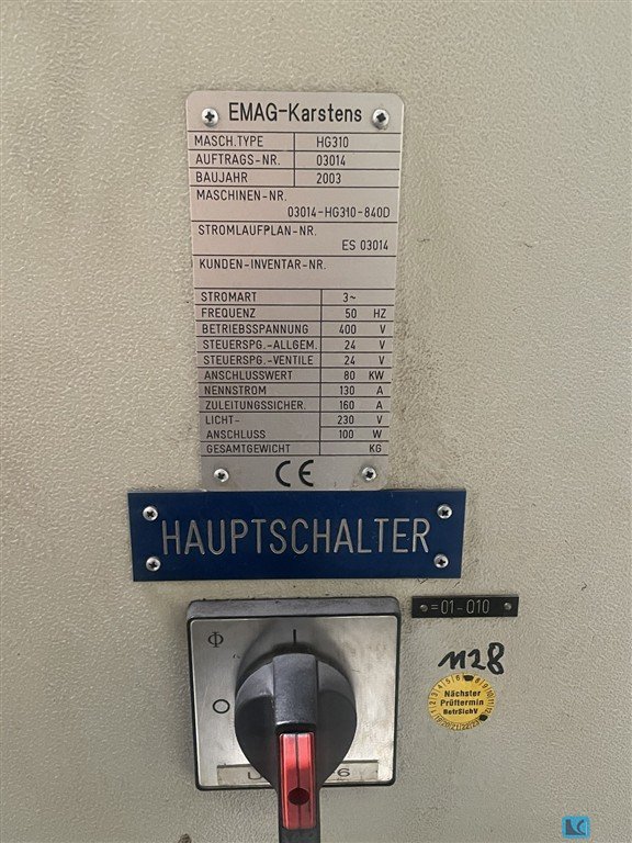grinding length:1500 mmweight of the machine ca.:12 tKarstens EMAG H310 Universal Grinding MachineYear of manufacture: 2004Center distance: 1500 mmCenter height: 325 mmReinforced workpiece spindle, load capacity up to 250 kgDriven C-axis for polygon, thread, and eccentric grinding.3 individually mounted grinding spindles.Siemens 840D control system