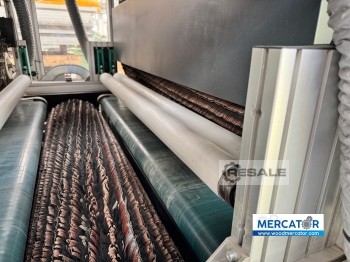 Machine d’étalonnage SCM modèle SANDYA 20 RRR 135, avec 3 courroies : -1re courroie avec rouleau D=250 mm en acier rainuré -2e bande avec rouleau D=250 mm en caoutchouc 55 shore -3e courroie avec rouleau en caoutchouc D=320 mm en caoutchouc de plage 35 - Moteurs à 3 courroies : KW 15 + 11 + 8,8/11 2 vitesses - exclusion pneumatique on/off des groupes, du tableau de contrôle - des chaussures sur les 3 rouleaux - développement de courroies abrasives de 2620 mm - Oscillation électronique des courroies, pour une consommation d’air plus faible - positionneur automatique de table, avec lecteur de mesure numérique - Tapis d’avancement en bon état - Centrage pneumatique de courroie - Variateur de vitesse d’avance - convoyeur à rouleaux de support d’entrée et de sortie Machine selon les normes CE, année 1999 VISIBLE INSTALLÉ ET EN FONCTIONNEMENT JUSQU’EN ...