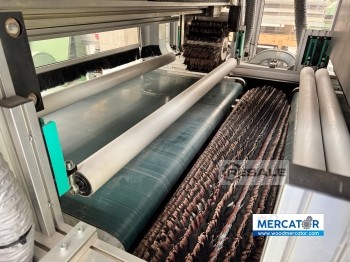 Ponceuse de calibrage SCM SANDYA 20 mod. 20 M3 135 d’occasion Année de fabrication 2003 N° série AE/024903 Largeur maximale usinable mm. 1350 Vitesse d’avancement 3,5-18 mt/m avec inverseur Hauteur usinable 4-170 mm table de cuisson sous vide KW 7.5 Composition: Groupe I : galet d’étalonnage en acier rainuré D. 250 - Moteur KW 22 Groupe II : rouleau de ponçage d. 250 dureté 45 SH - moteur 2 vitesses KW 9/11 tr/min 1400/2800 Groupe III : rouleau combiné d. 170 dureté 30 SH + tampon élastique sectionné à 46 secteurs - moteur KW 11 avec inverseur Groupe I : rouleau en satin scotch brite Positionneur plat avec pièce Développement de bandes mm. 2620 x 1370 Souffleurs de bande II et III Centrage automatique de la bande Intervention électronique Rouleau I / Rouleau II / Rouleau III / Tampon