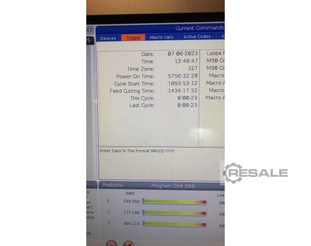 Lunghezza tabella: 0 mm Largozia tabella: 0 mm Lungitudinale X: 0 mm Cross Y: 0 mm Verticale Z: 0 mm Posizioni ATC: 0 Posizioni APC: 0 CNC Marca: 0 CNC Modello: 0 Controllo: HAAS AUTOMATION Dati tecnico Lunghezza tabella: 1219 mm Largozza tabella: 457 mm Carica da tavolo max.: 794 kg Corruttanza longitudinale (asse X): 1016 mm Corruttanza trasversale (asse y): 508 mm Corraggiatura orizzontale (asse z): 635 mm Pallet: numero: 2 Interro cambio utensile: Numero utensili: 40 Diametro max.: 64 mm Diametro con tasche adiacenti libere: 127 mm Cozza utensile: 330 mm Max. peso utensile: 5,4 kg Tempo di cambio utensile: 2,8 sec Distanza dal naso del mandrino alla tavola: 742 mm Frequenza del mandrino: assicurabile fino a: 12000 rpm Frequenza di avanzamento del lavoro: 21,2 m/min Traspressione rapida:: 35,6 m/min Connetto aria: 6 bar Tensione 50 Hz 3x: 400 Volt Potenza del cingolo: 22,4 kW Peso d ...