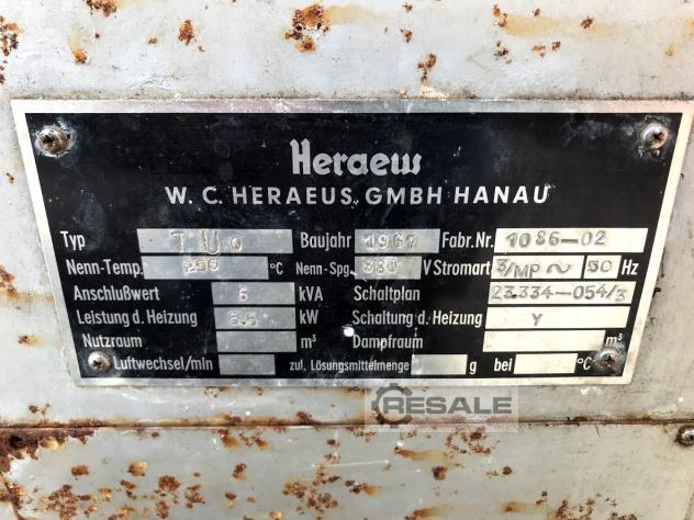Manufacturer: Heraeus Type: TUo Year of construction: 1967 Power: 5.5 kW Temperature: 250 °C Dimensions: 600 x 600 x 550 mm