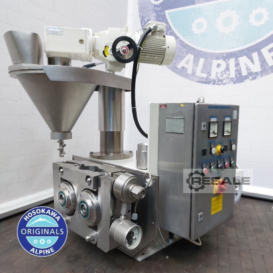 A HOSOKAWA ALPINE Originals machine Refurbished by the original manufacturer Use of original components only Original manufacturer warranty Guaranteed manufacturer spare parts supply Short lead time Before delivery, the machine is overhauled, all wear parts are revised and exchanged if needed and customized to your specific needs Possibility to provide all additionally required peripherals or adapt to existing production plant We are also interested in buying back disused HOSOKAWA ALPINE machinery Refurbished Pharmapaktor APC L200/50. The Hosokawa Alpine APC L200/50 Pharmapaktor is the perfect compactor to test the product behaviour with this technology, while it even allows to keep a continuous production at small scale if needed. The Pharmapaktor can be fitted with a flake crusher to granulate the resulting compacted material increasing the possibilities of end produc ...
