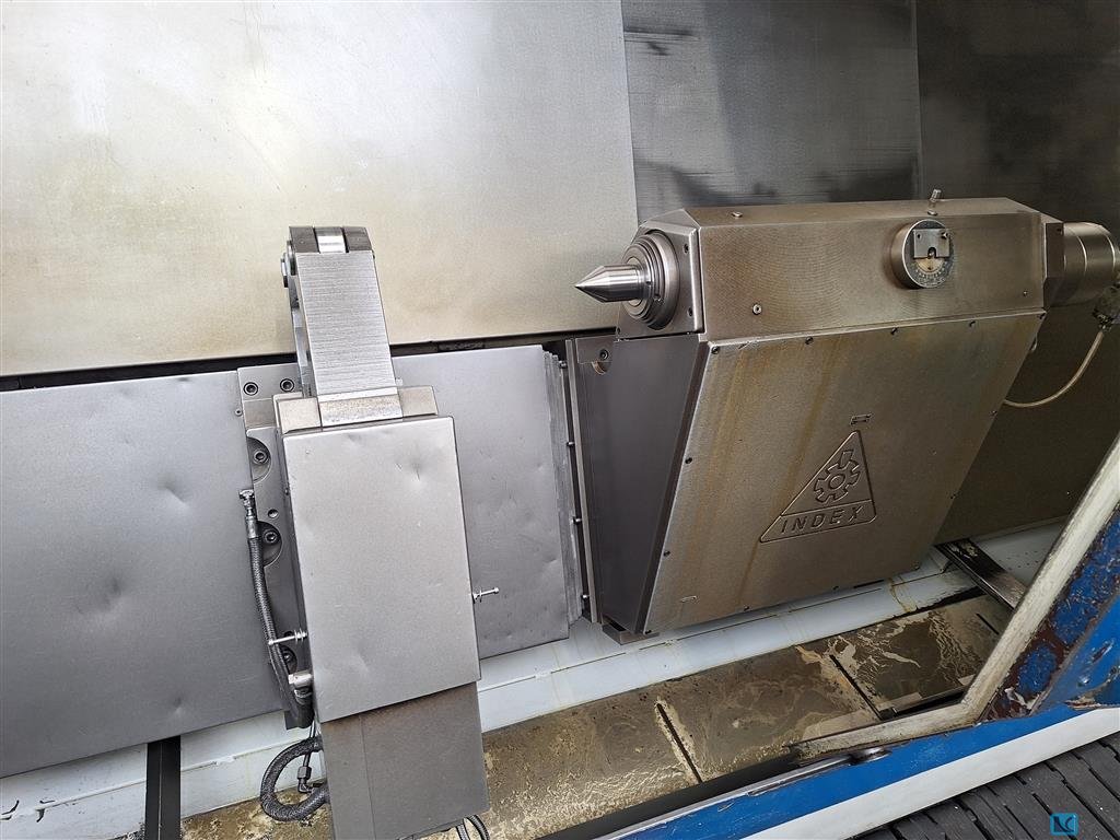 Manufacturer: Index Model:G 200 RATIO LINE Year of Manufacture: 2006 Machine type: CNC Lathe Operating Hours: approximately 115,000 h TECHNICAL DATA Control: Siemens 840D (NCU 573.5, NC memory expansion to 3 MB) C-axis on main and counter spindle Thread cutting without compensation chuck Electronic shaft Additional V24 RS232 in control cabinet Transmit/Tracyl function MDE interface (machine on, machine running, piece counter) Marposs (Brankamp) collision monitoring CMS100 3D machine model for kinematic simulation in CAM programming system Control cabinet cooling unit (2 pieces) Main Spindle D65 Collet holder for pull tension HAINBUCH Counter Spindle D60 Collet holder for pull tension HAINBUCH Stop device Coolant flushing of counter spindle (shut-off valve electric) Foot switch Turret (12 stations) bottom and top Driven tools turret 1 and 2 Control function "live ...