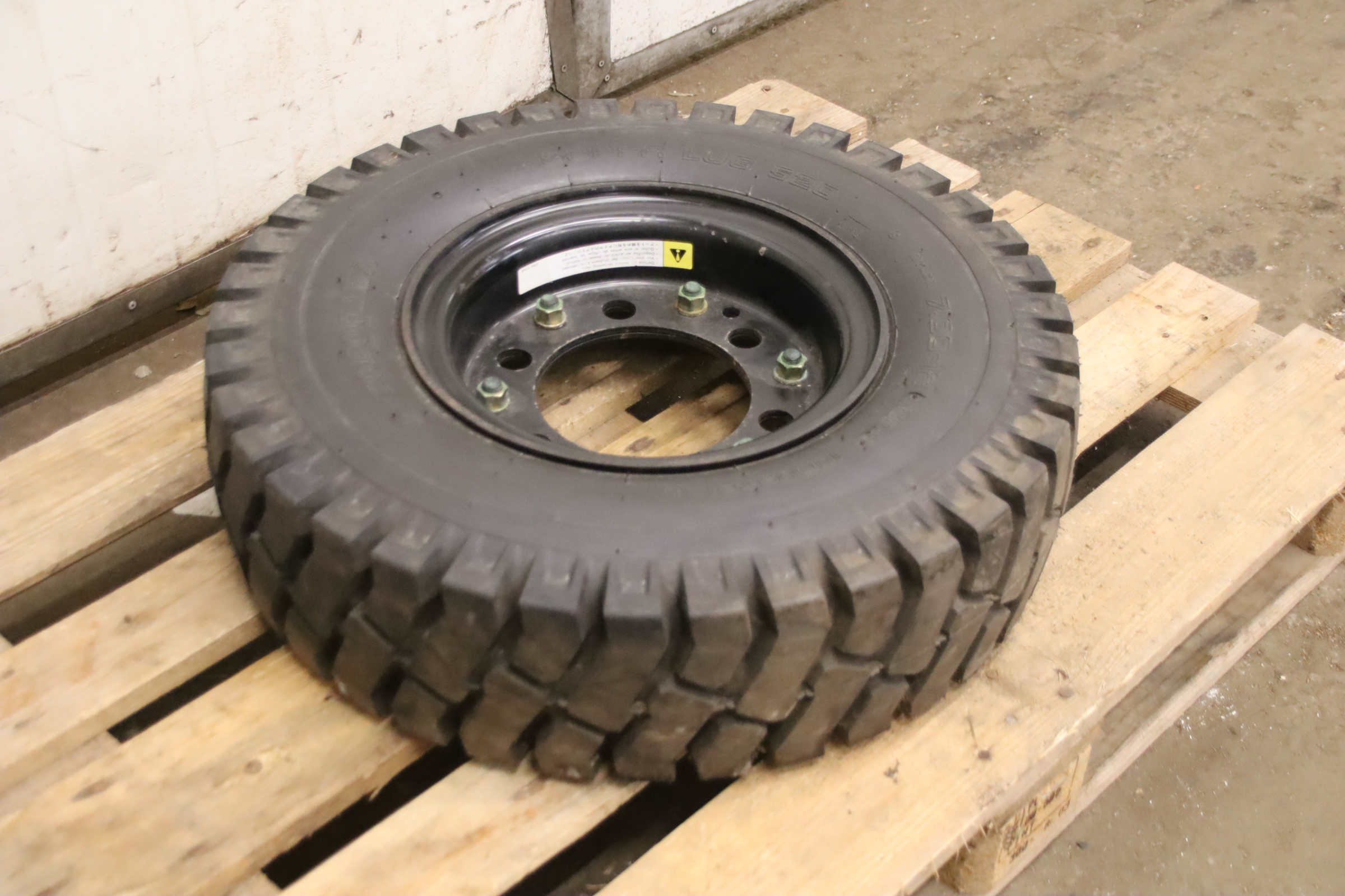 Tires with rim, trailer tires, heavy-duty tires, heavy-duty wheels, forklift tires-Manufacturer: Solideal, 2 pieces of tires with tube and rim-Tire size: 23-5(150/100-13)-Pressure:bar-Bolt circle: Ø 162 x 18 mm-Recess: Ø 110 mm-Price/Delivery: complete-Weight: 27 kg/piece