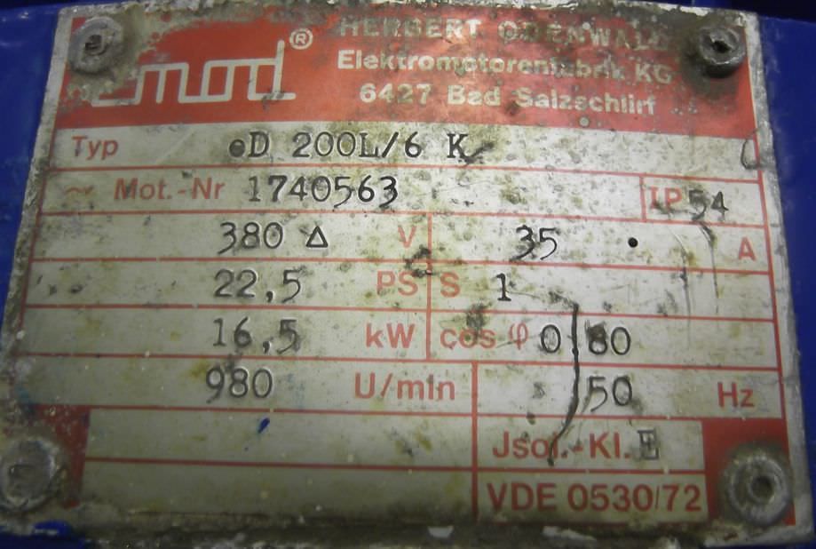 Tipo di macchina: Electric motor 16 kW 980 rpm
