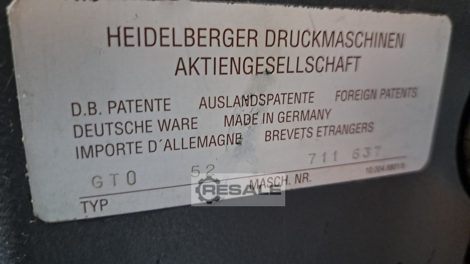 | 1987 | HEIDELBERG | GTO 52 | 8000 EUR | [Sep 2016] |