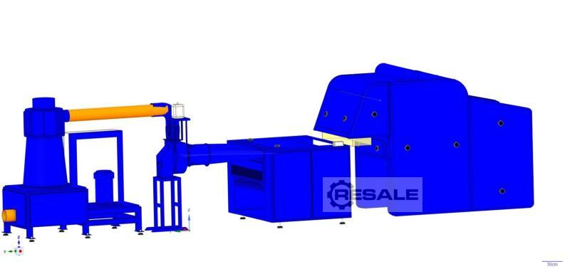 usato NOWO NOWOROLL Macchina a fibre di sfere. La macchina per la fibra di sfera NOWO NOWOROLL è stata costruita nel 1998 in Finlandia da NOWO Textile Machinery. Si tratta di un sistema estremamente avanzato progettato per la produzione efficiente di palline in fibra di poliestere con una lunghezza di 32 mm. La sfera in fibra è un ottimo imbottitura per cuscini da camera da letto, cuscini per mobili, peluche e altri prodotti tessili. È anche un ingrediente ideale per creare miscele con schiuma di poliuretano. Il processo produttivo inizia con una pesatura accurata e apertura della fibra di poliestere. La fibra preparata in questo modo viene trasportata da un ventilatore attraverso un sistema di tubazioni con un sistema di umidificazione direttamente al modulo di sfera. Qui viene eseguito il processo di torsione della fibra in una palla. Le palline finite in fibra di poliestere cad ...