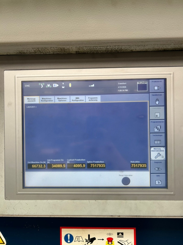 : neu : 2025 : 080102 : prompt, Zwischenverkauf v : Türkei : 52200 €: 804.11 €: 1 : 42100 €: 60 to: 2100 mm: X und Y Achse : 160 mm: 1700 mm: 320 mm: 380 mm: hydraulisch : 90 mm/s: 10 mm/s: 600 mm: 845 mm: 100 mm: 120 l: 7,5 kW: 2450 mm: 1600 mm: 2235 mm: 4340 kgNC control for immersion depth (Y) and back gauge (X)synchronization control by means of a torsion shaftsheet support armslaser safety device Fiesslermotorized crowning tableintermediate pieces for the upper tool clampingdie holder for 60 mm toolsdie with 4 V openingsupper tool, slightly cranked, sectionedfoot pedaluser manual in GERMAN or ENGLISHThe data for this ad was created with ModulMWS - the software solution of LogoTech oHG.
