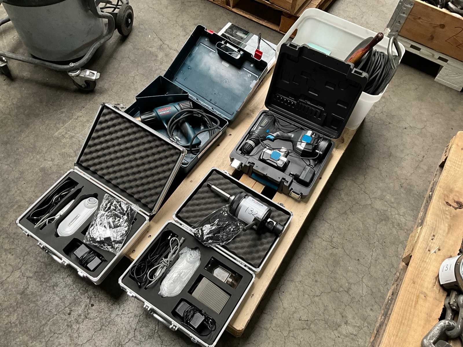 inclusi Hi-Koki / Metabo / ...; inclusi 2x drill; sega circolare manuale; 2x seghetto puzzle; posizionatore pneumatico per dadi; morsicchiatore pneumatico; vari cappelli; piastre abrasive; lampada a mano; senza pallet; Auction-ID: A1-43992-250