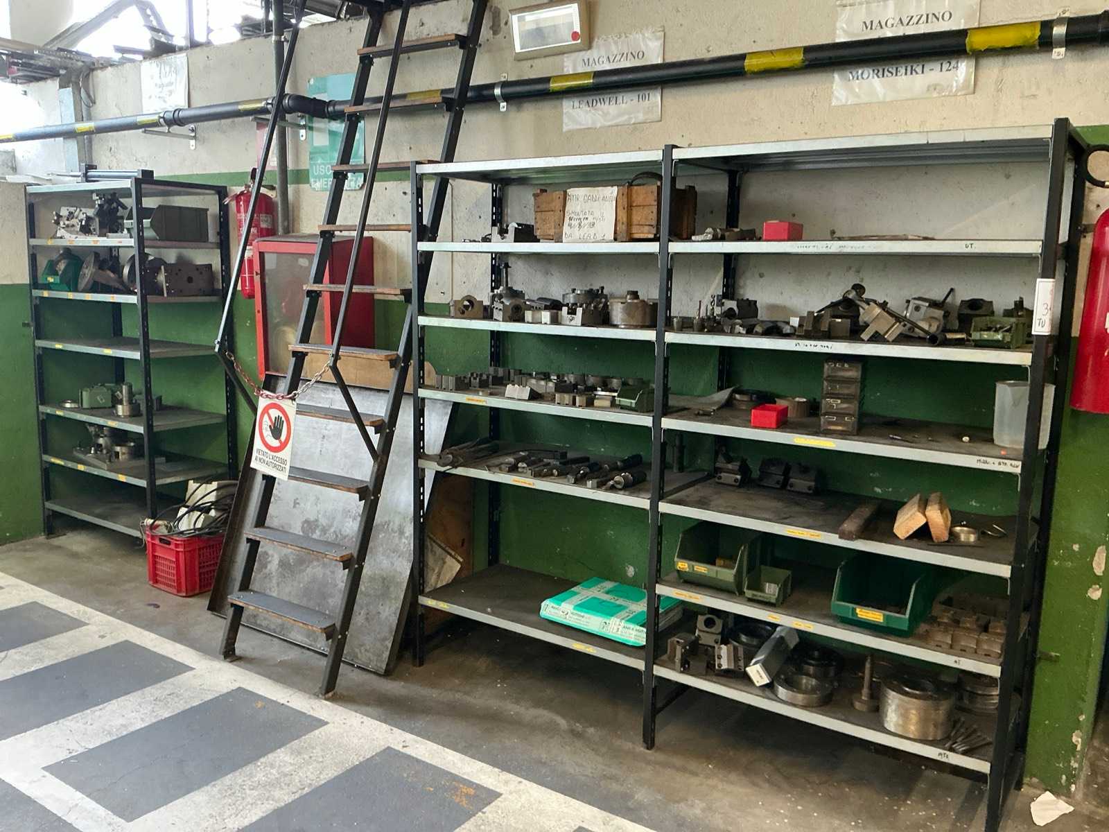 Comprensivo di: Struttura a scaffale completa, e utensili vari ESCLUSIVAMENTE il contenuto della singola campata fotografata. Il contenuto posizionato sugli ALTRI ripiani è stato inserito in un altro lotto. Quantità e tipologie assortite, come evidenziato in foto. Non si garantisce la totale disponibilità dei singoli elementi visibili. Auction-ID: A7-45181-9